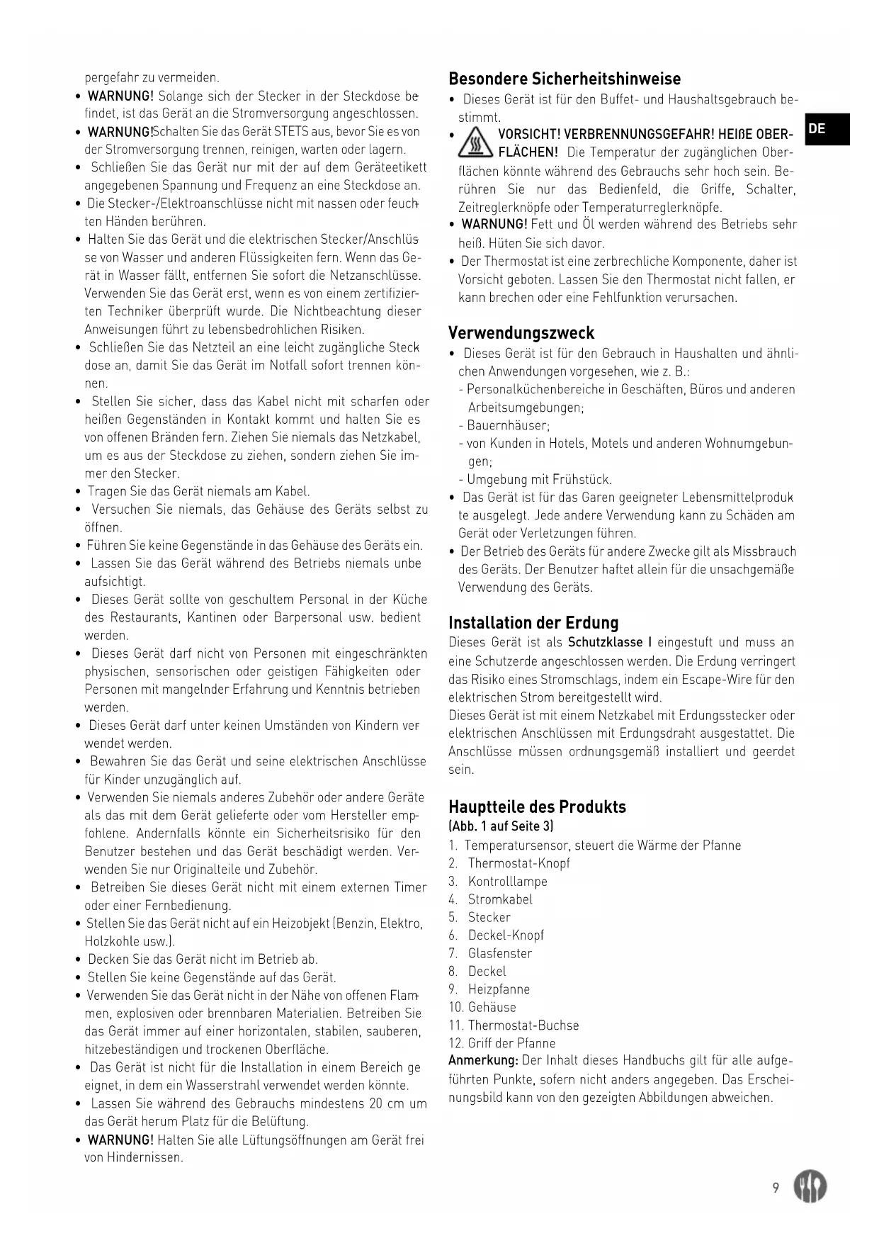 - Dieses Gerät ist für den Buffet- und Haushaltsgebrauch be- stimmt.