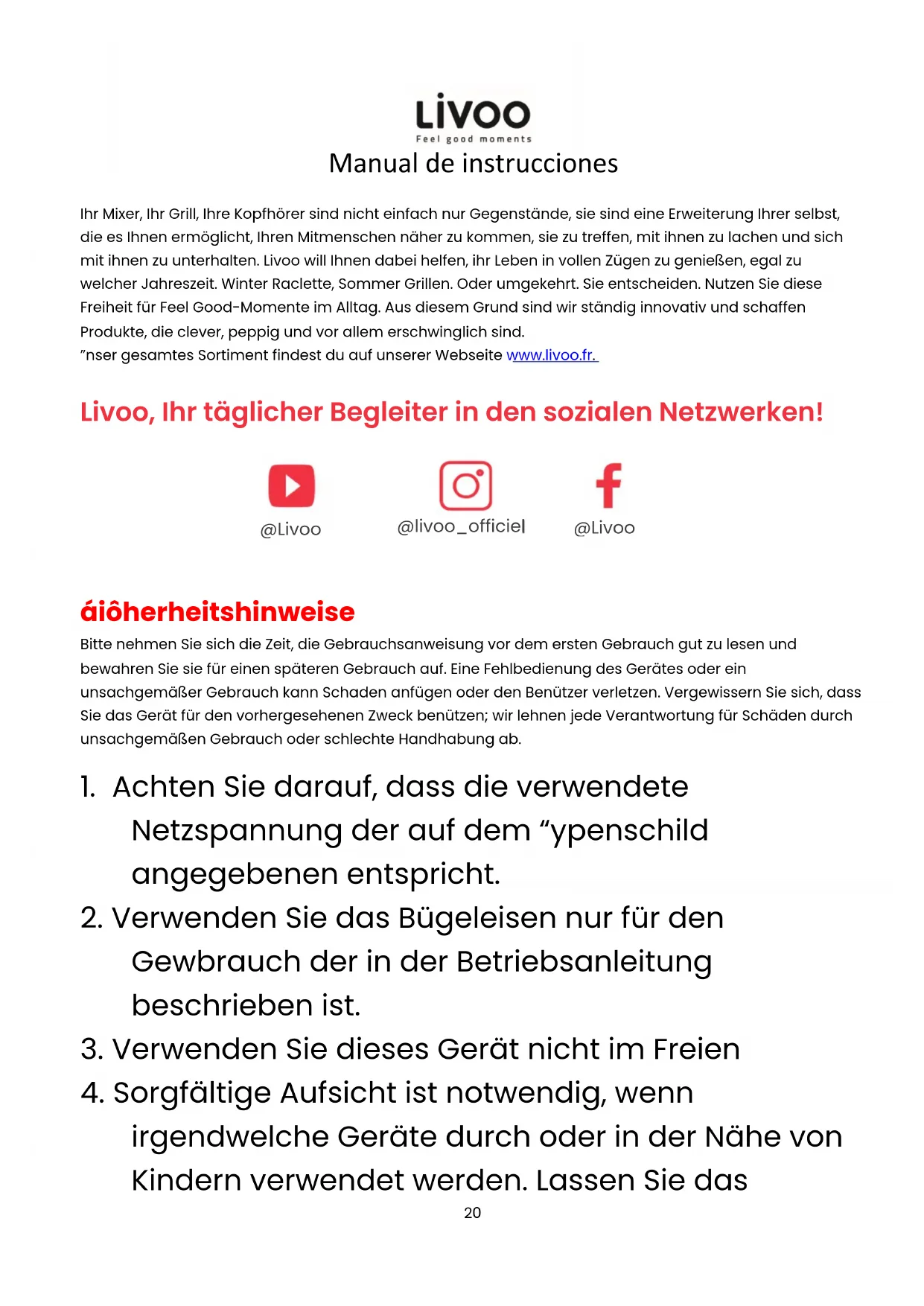 Danke, dass du dich für ein Livoo-Produkt entschieden hast! DEManual de instrucciones