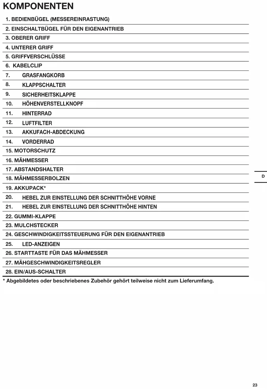 - Abgebildetes oder beschriebenes Zubehör gehört teilweise nicht zum Lieferumfang.D