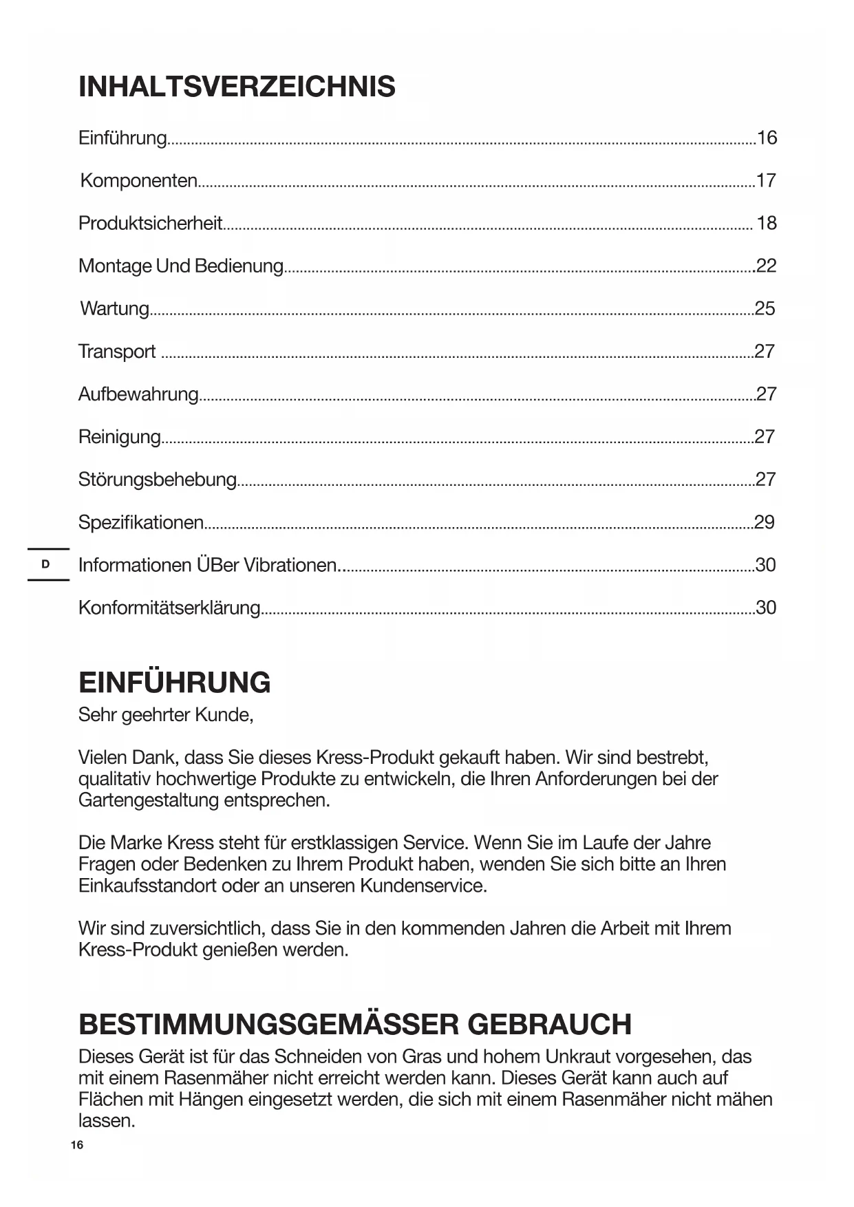 KG161.9 - Grasenschneider KRESS - Kostenlose Bedienungsanleitung
