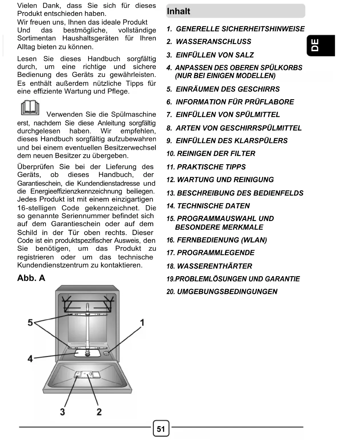Verwenden Sie die Spülmaschine erst, nachdem Sie diese Anleitung sorgfältig durchgelesen haben. Wir empfehlen, dieses Handbuch sorgfältig aufzubewahren und bei einem eventuellen Besitzerwechsel dem neuen Besitzer zu üb ergeben.