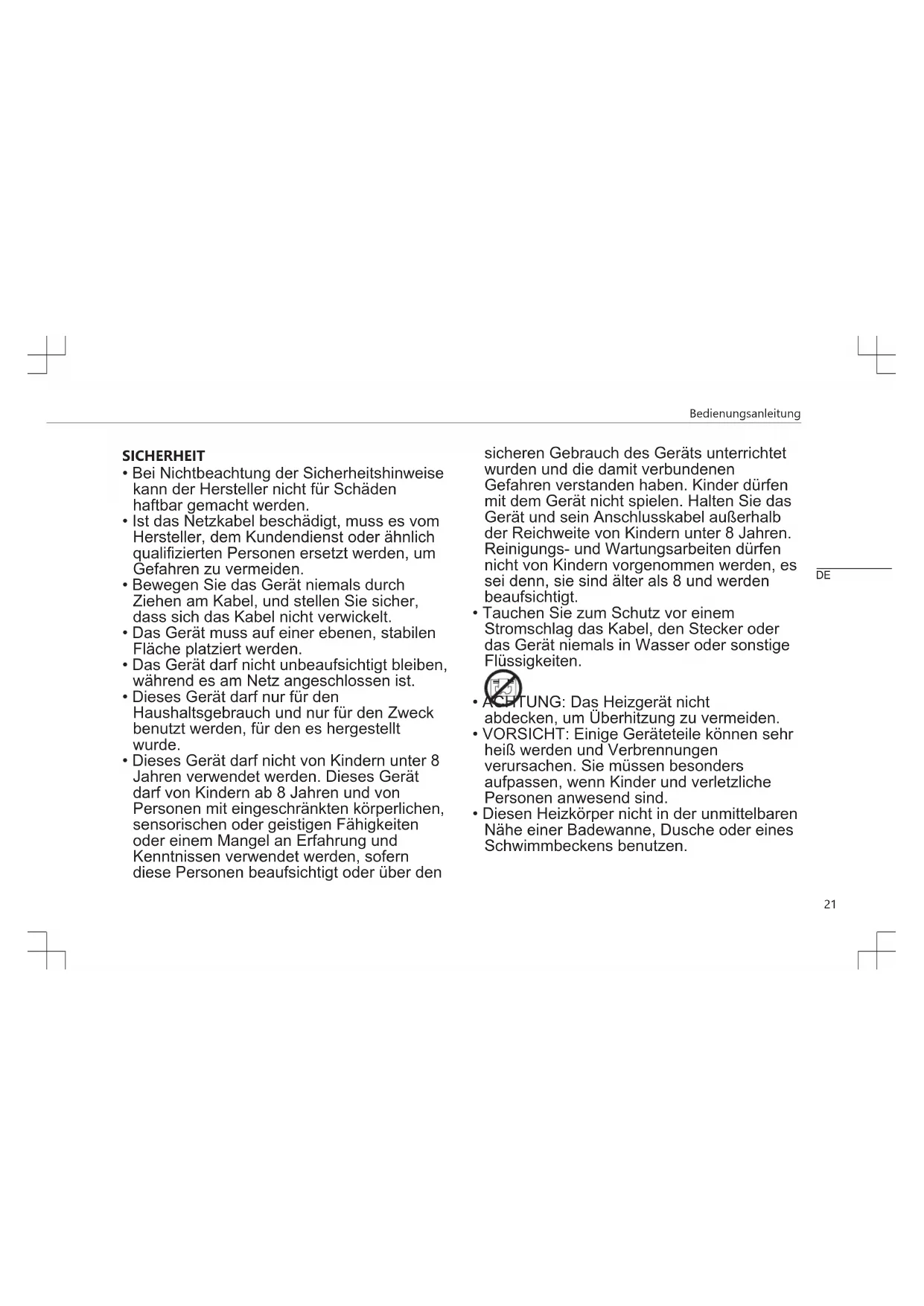 - ACHTUNG: Das Heizgerät nicht abdecken, um Überhitzung zu vermeiden.