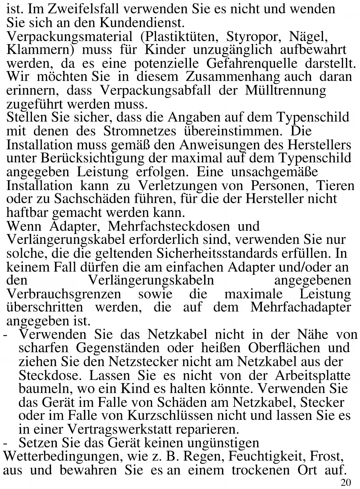 - Versorgung: AC 220-240V~50-60Hz - Leistung 1850 - 2200W