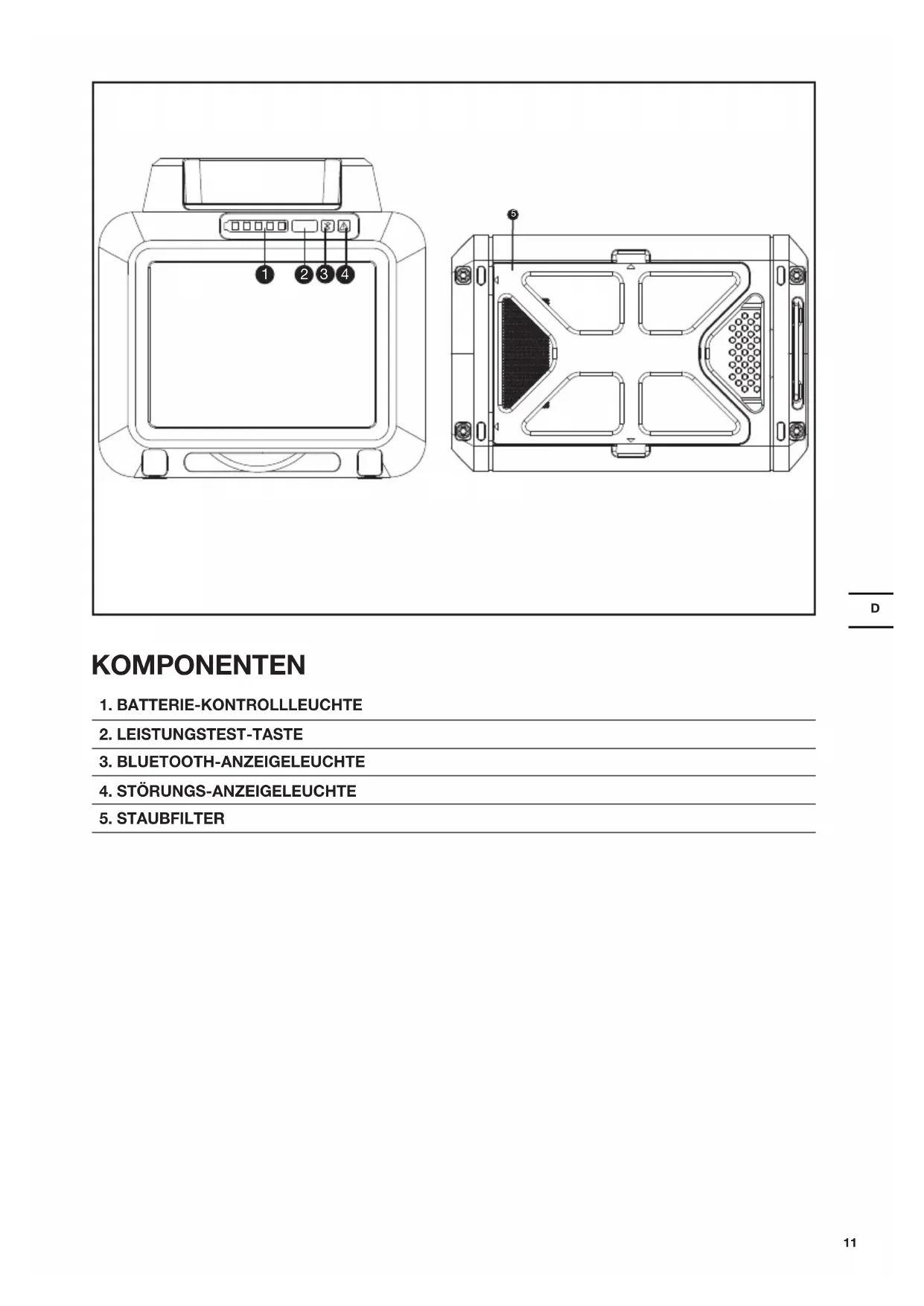 Gewicht des Akkus 3 kg Schutzgrad IPX5 Frequenzbänder für Bluetooth 2400-2483.5 MHz Maximale Sendeleistung für Bluetooth 8 dBm