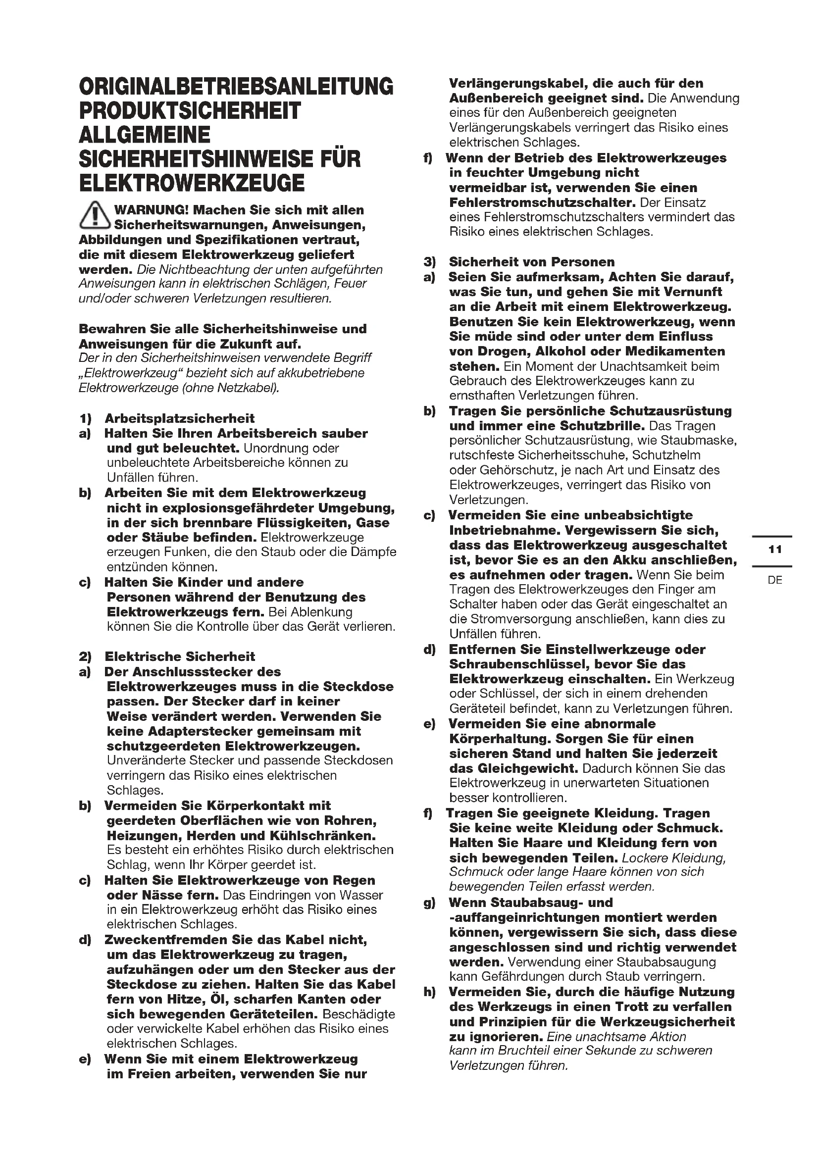 ORIGINALBETRIEBSANLEITUNG PRODUKTSICHERHEIT ALLGEMEINE