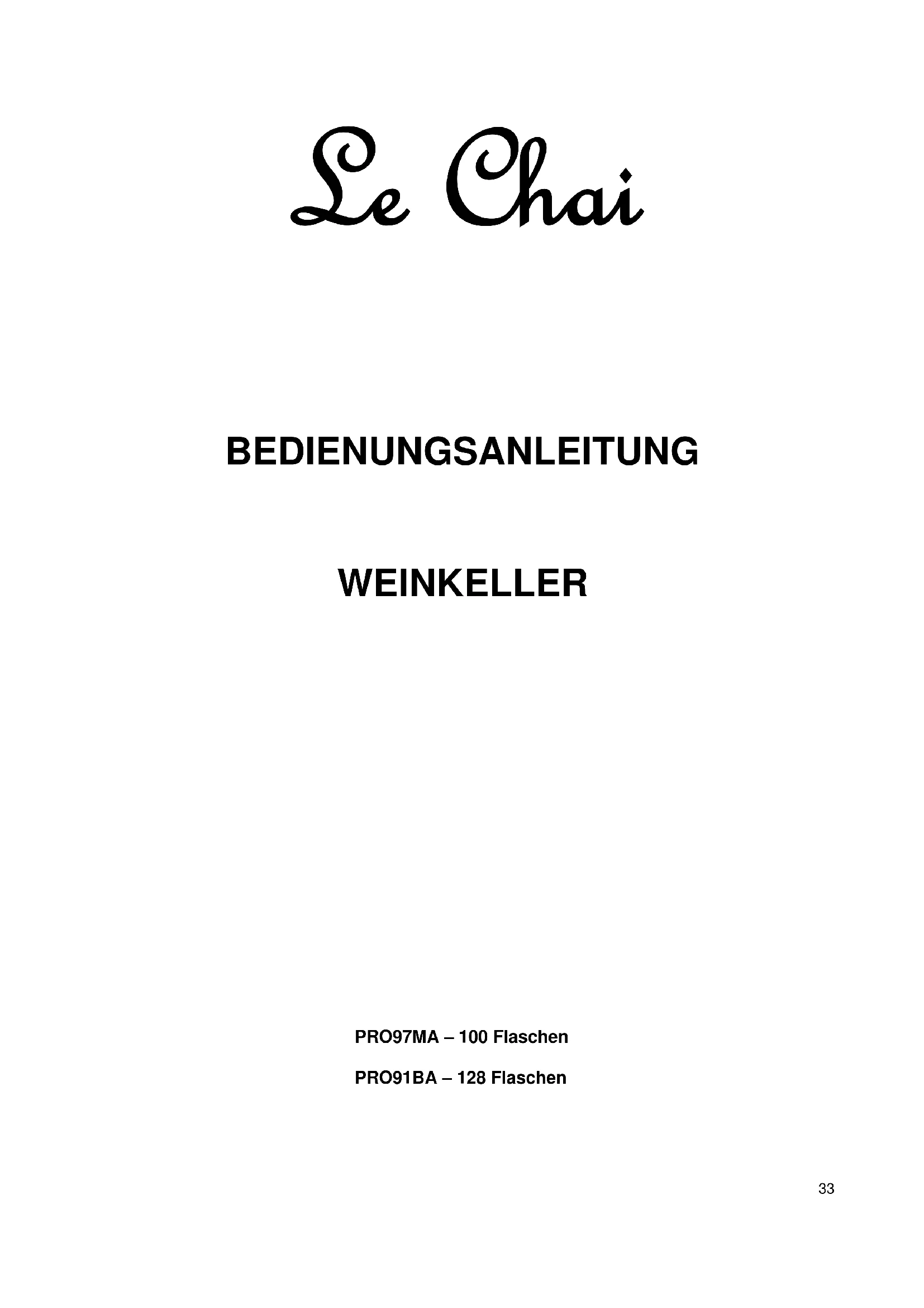 PRO97MA - Weinkeller LE CHAI - Kostenlose Bedienungsanleitung