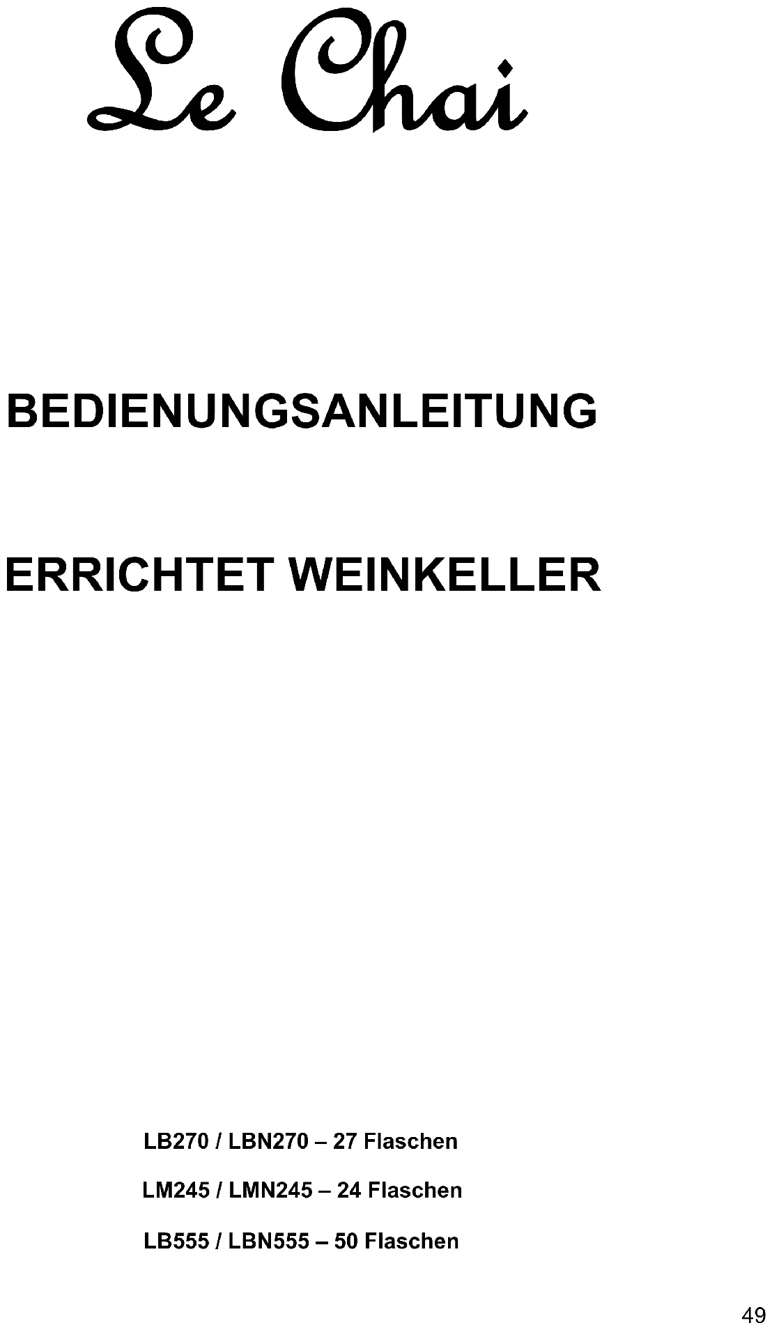 LB270 - Weinkeller LE CHAI - Kostenlose Bedienungsanleitung