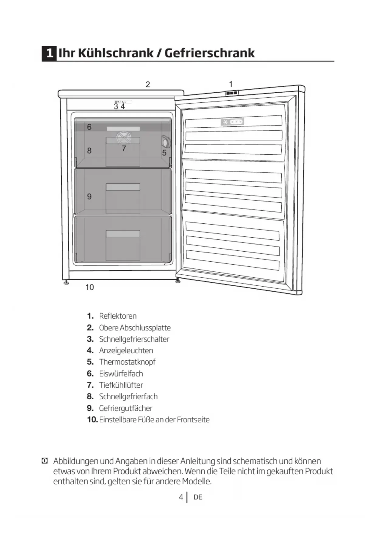 etwas von Ihrem Produkt abweichen. Wenn die Teile nicht im gekauften Produkt enthalten sind, gelten sie für andere Modelle. 1 Ihr Kühlschrank / Gefrierschrank