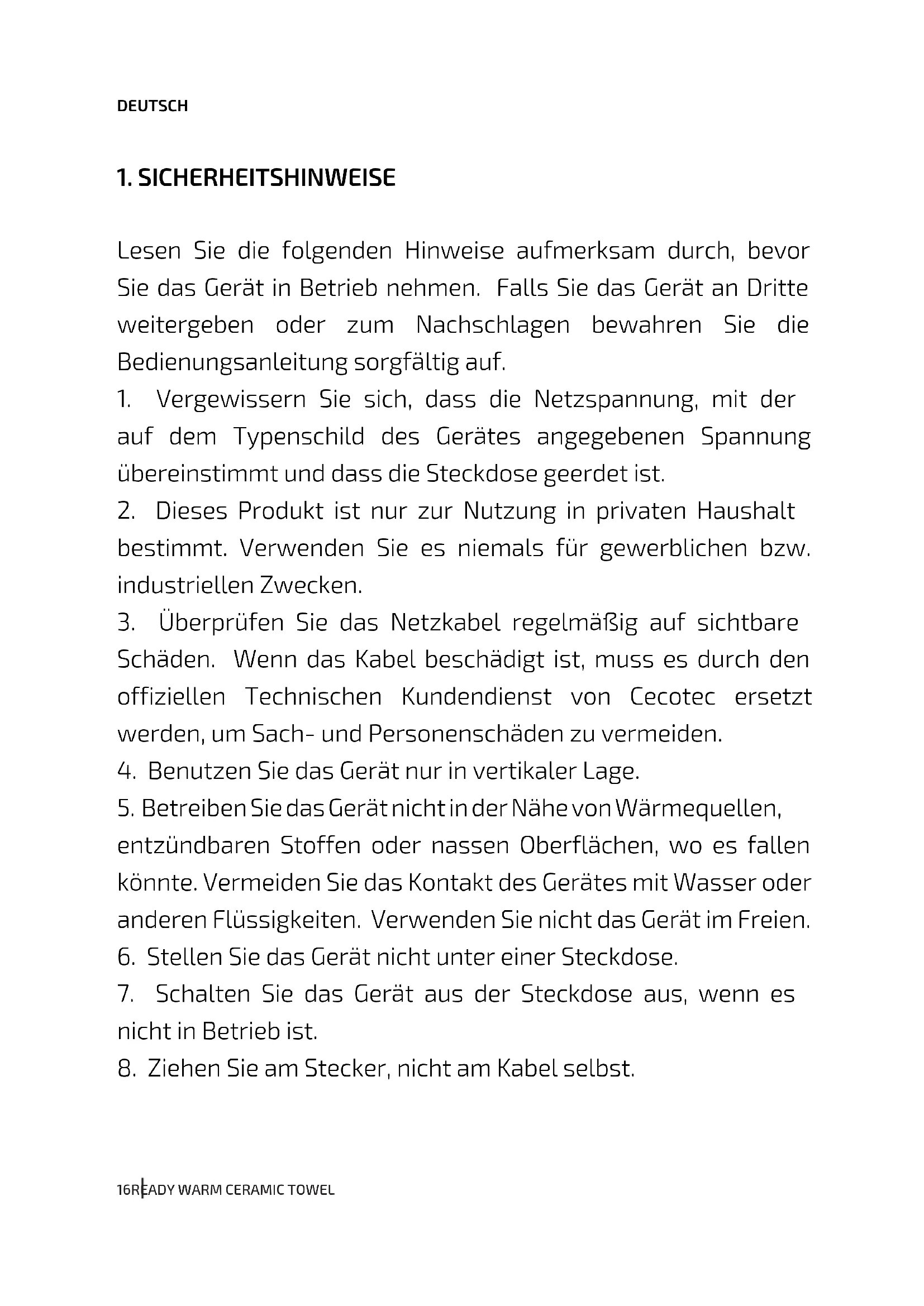 BEDIENUNGSANLEITUNG Ready Warm 9770 Ceramic Towel CECOTEC