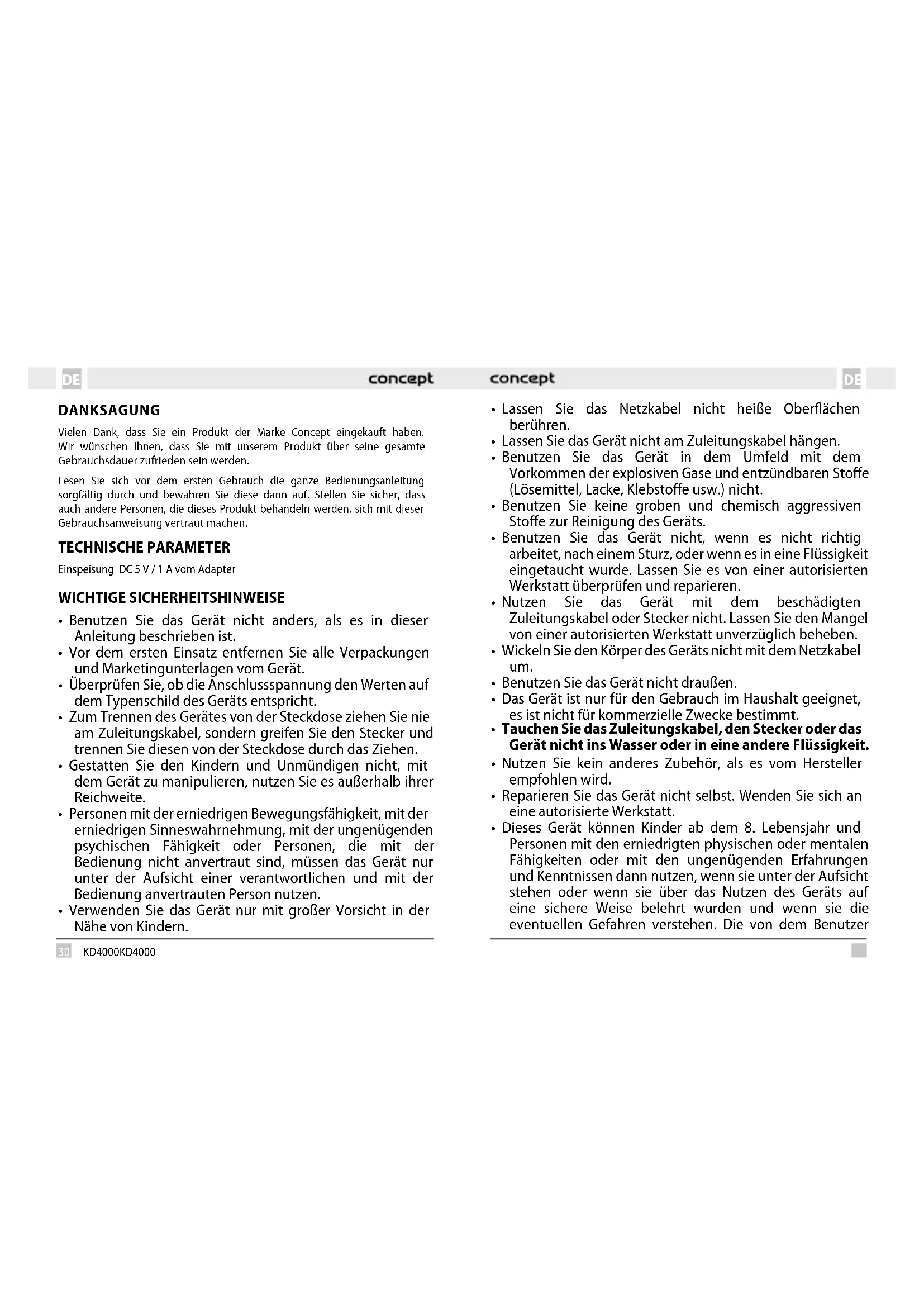 BEDIENUNGSANLEITUNG KD4000 Concept