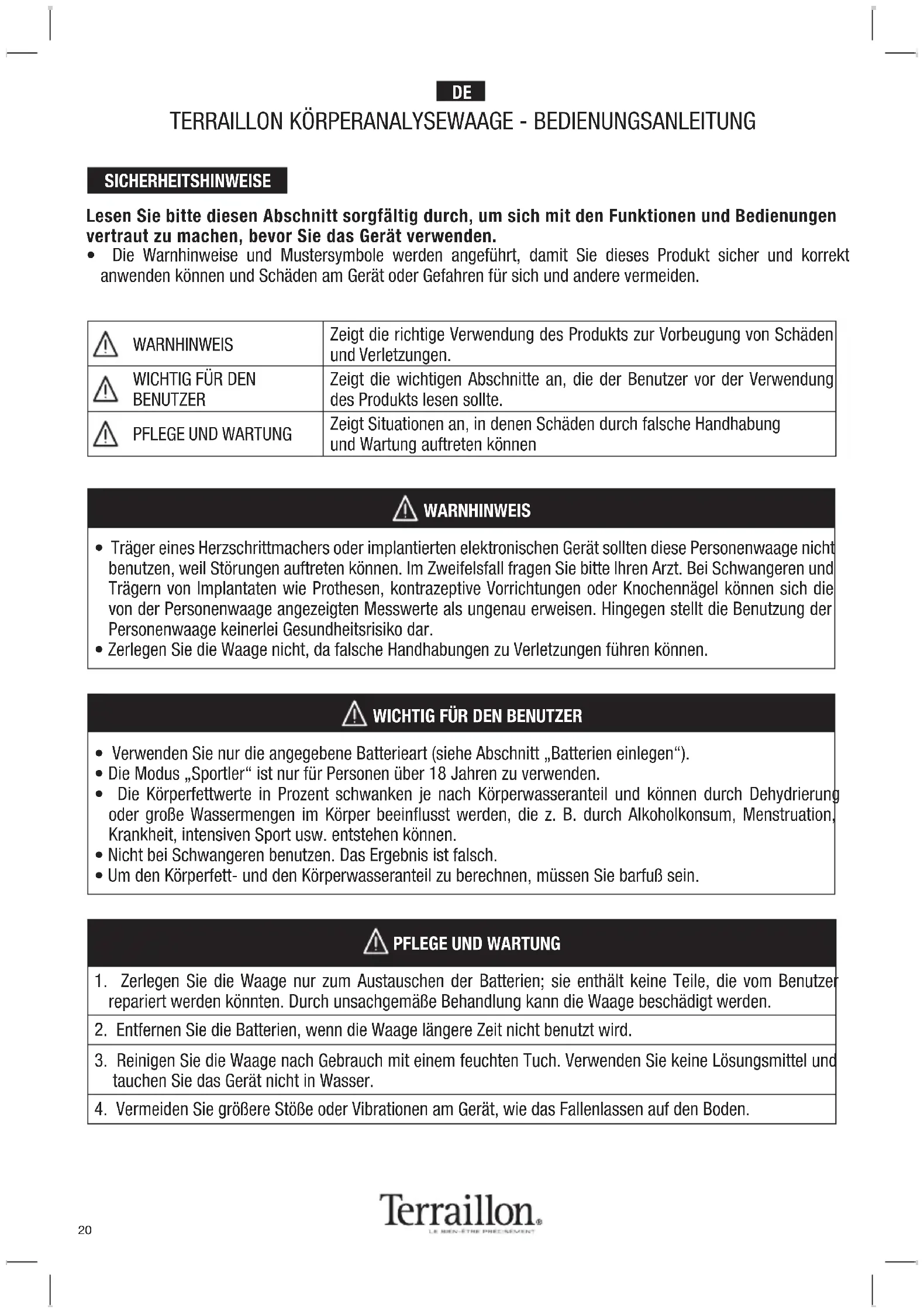 TERRAILLON KÖRPERANALYSEWAAGE - BEDIENUNGSANLEITUNG