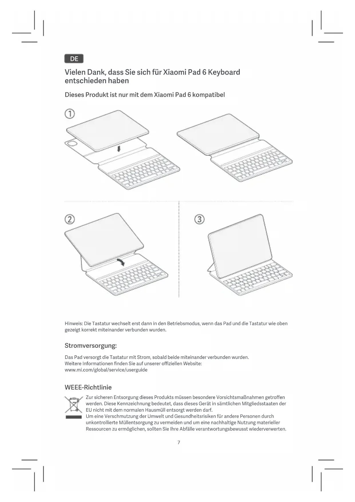 BEDIENUNGSANLEITUNG Pad 6 Keyboard Xiaomi