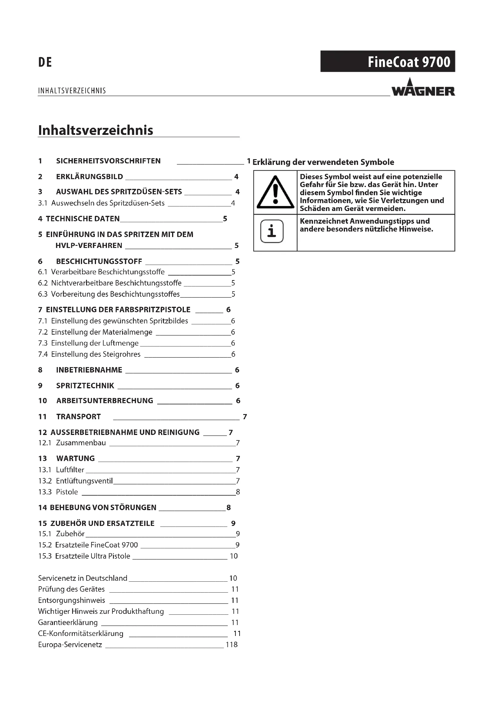 BEDIENUNGSANLEITUNG FineCoat 9700 WAGNER