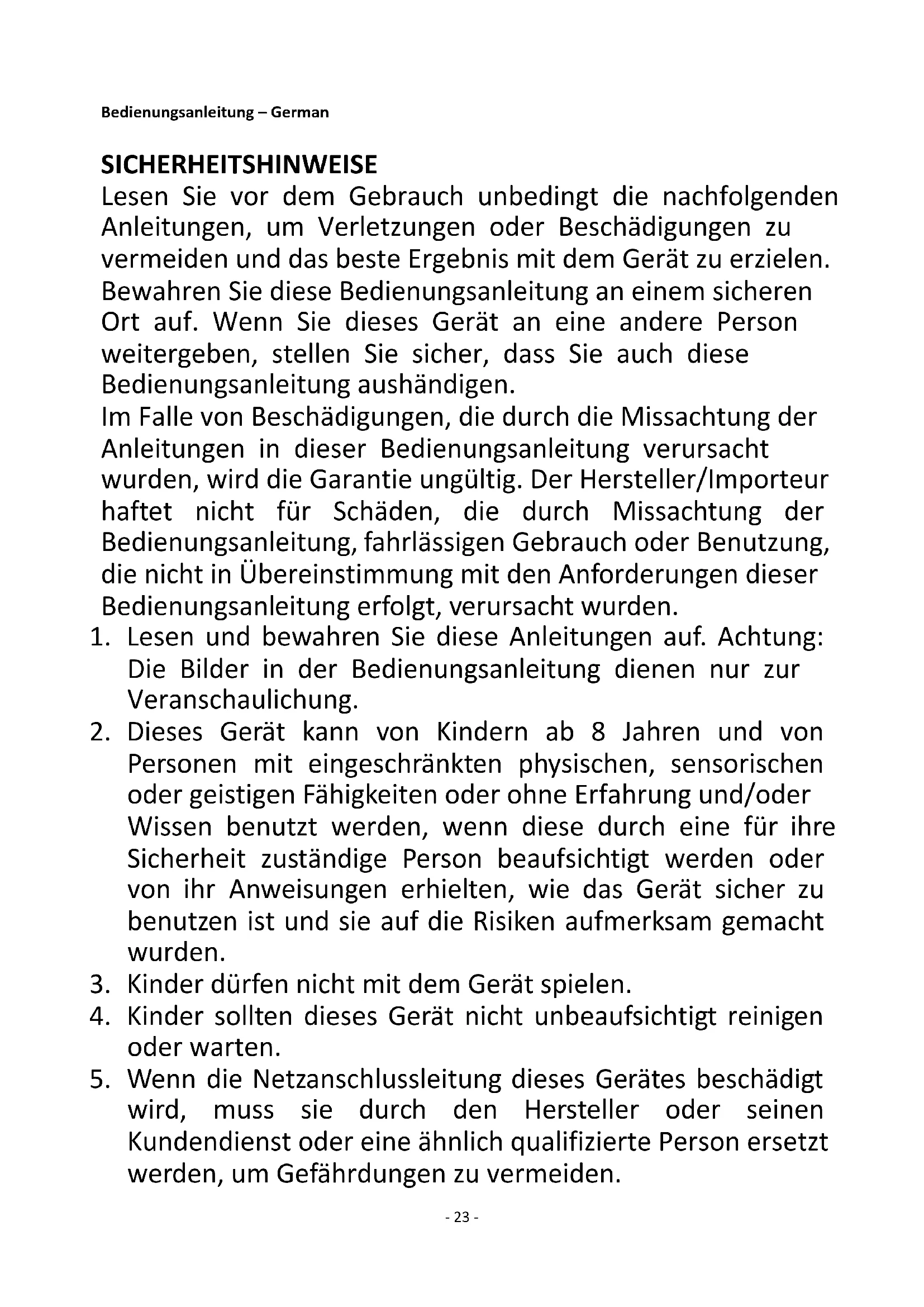 23. Im Falle einer Reparatur oder Wartung am Gerät einen