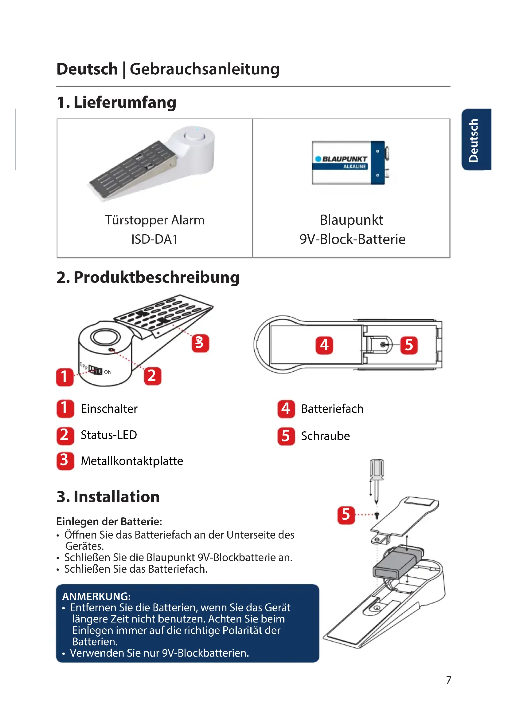 DE Gebrauchsanleitung Türstopper Alarm ISD-DA1