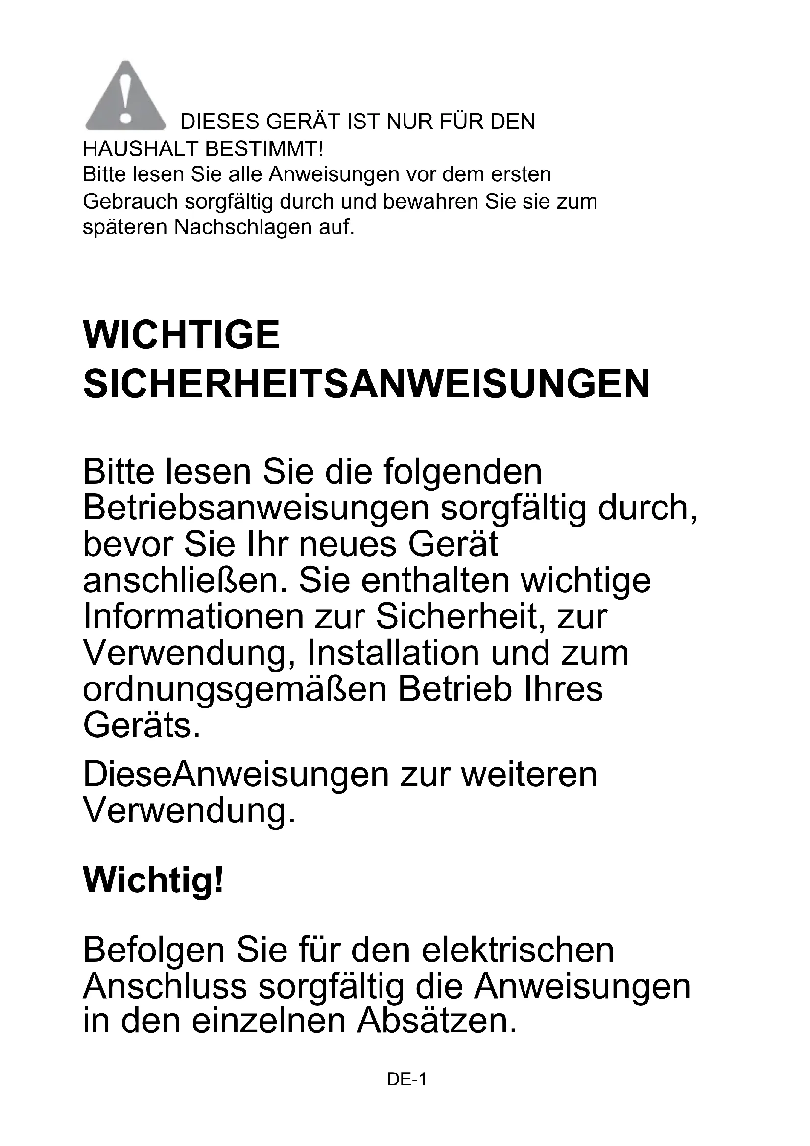 Stellen Sie vor dem Anschließen des Geräts sicher, dass die Spannung der Netzsteckdose in Ihrem Haus mit der auf dem Typenschild angegebenen übereinstimmt.DE-4