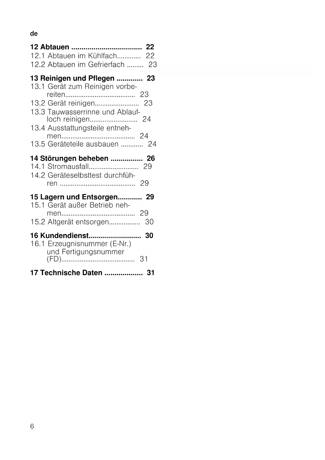 12.2 Abtauen im Gefrierfach ......... 23
