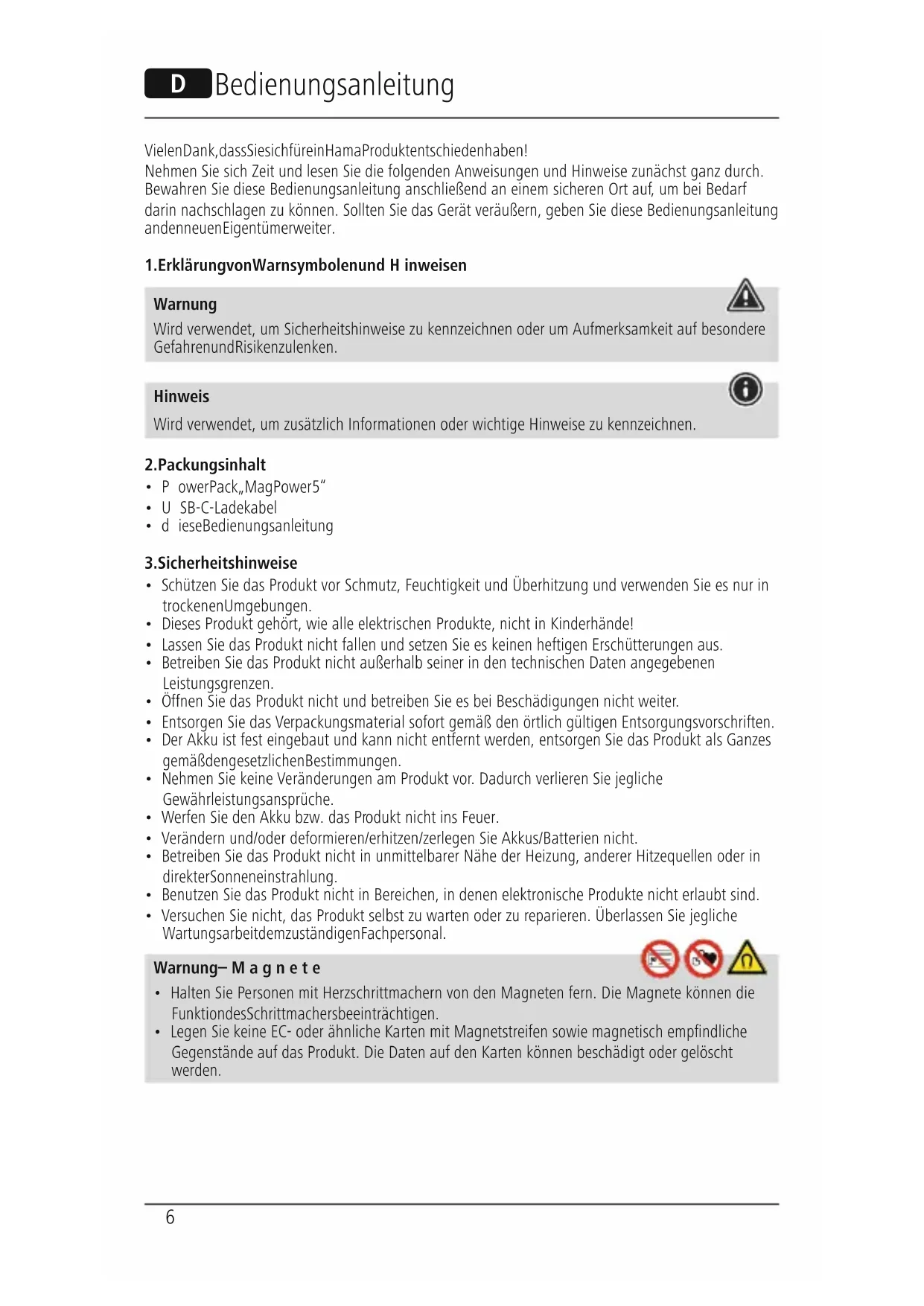 Finden Sie kostenlos die Bedienungsanleitung des Geräts MagPower4 201695 HAMA als PDF.