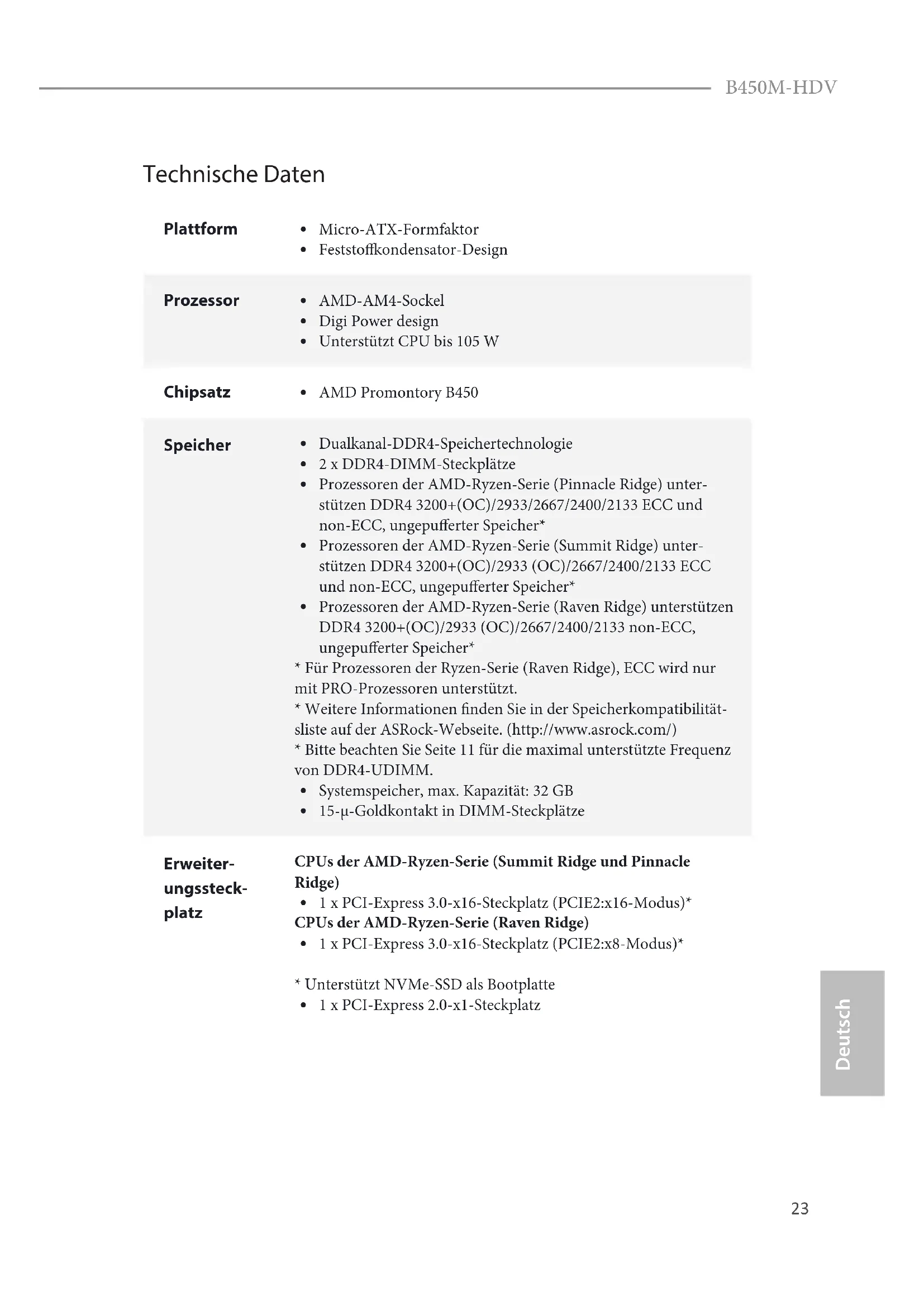 B450M-HDV - Motherboard ASROCK - Kostenlose Bedienungsanleitung