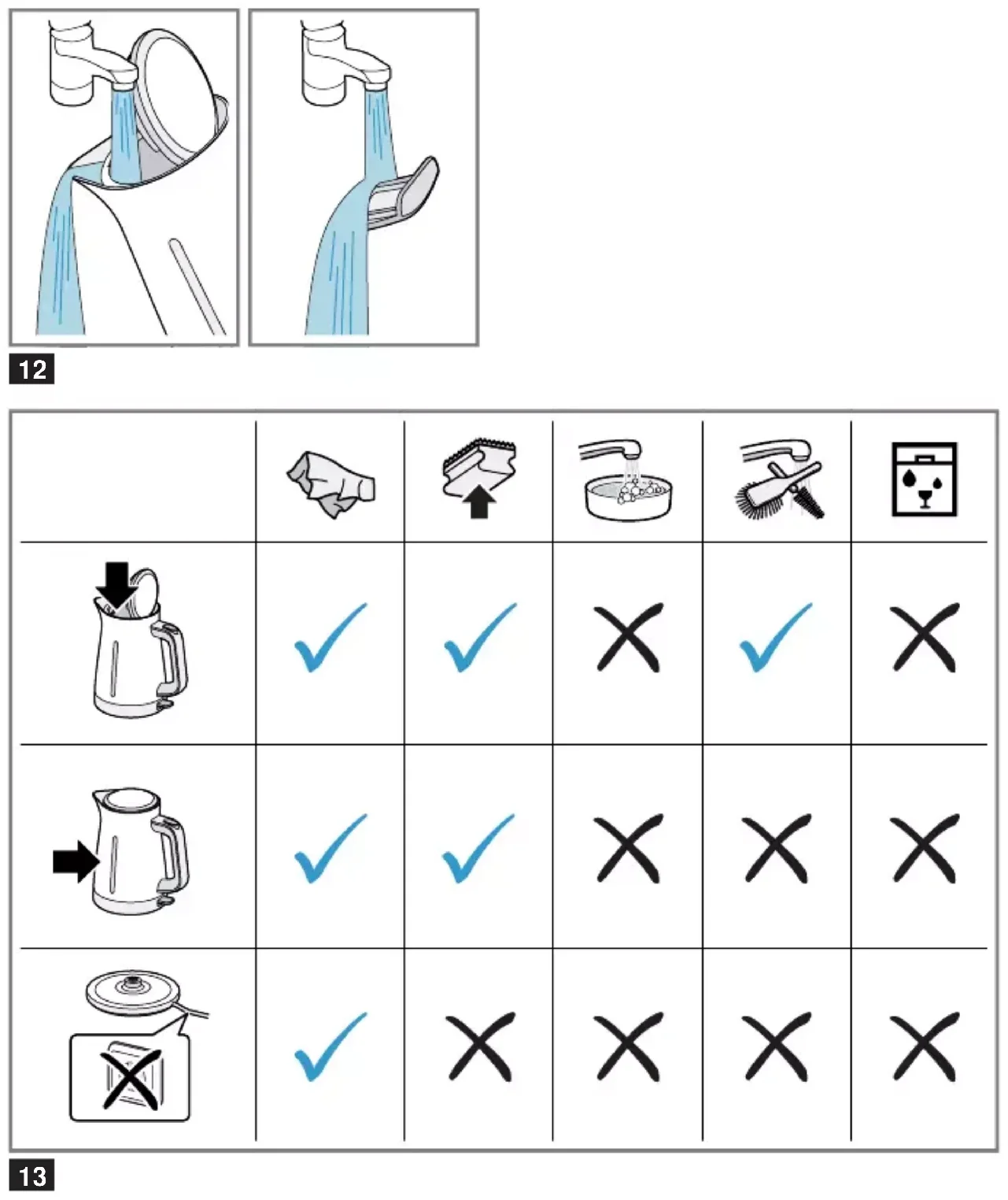 - Abb. 10 - 12 Reinigungsübersicht ▶ Keine alkohol- oder spiritushaltigen Rei- nigungsmittel verwenden. ▶ Keine scharfen, spitzen oder metalli- schen Gegenstände benutzen. ▶ Keine scheuernden Tücher oder Reini- gungsmittel verwenden.