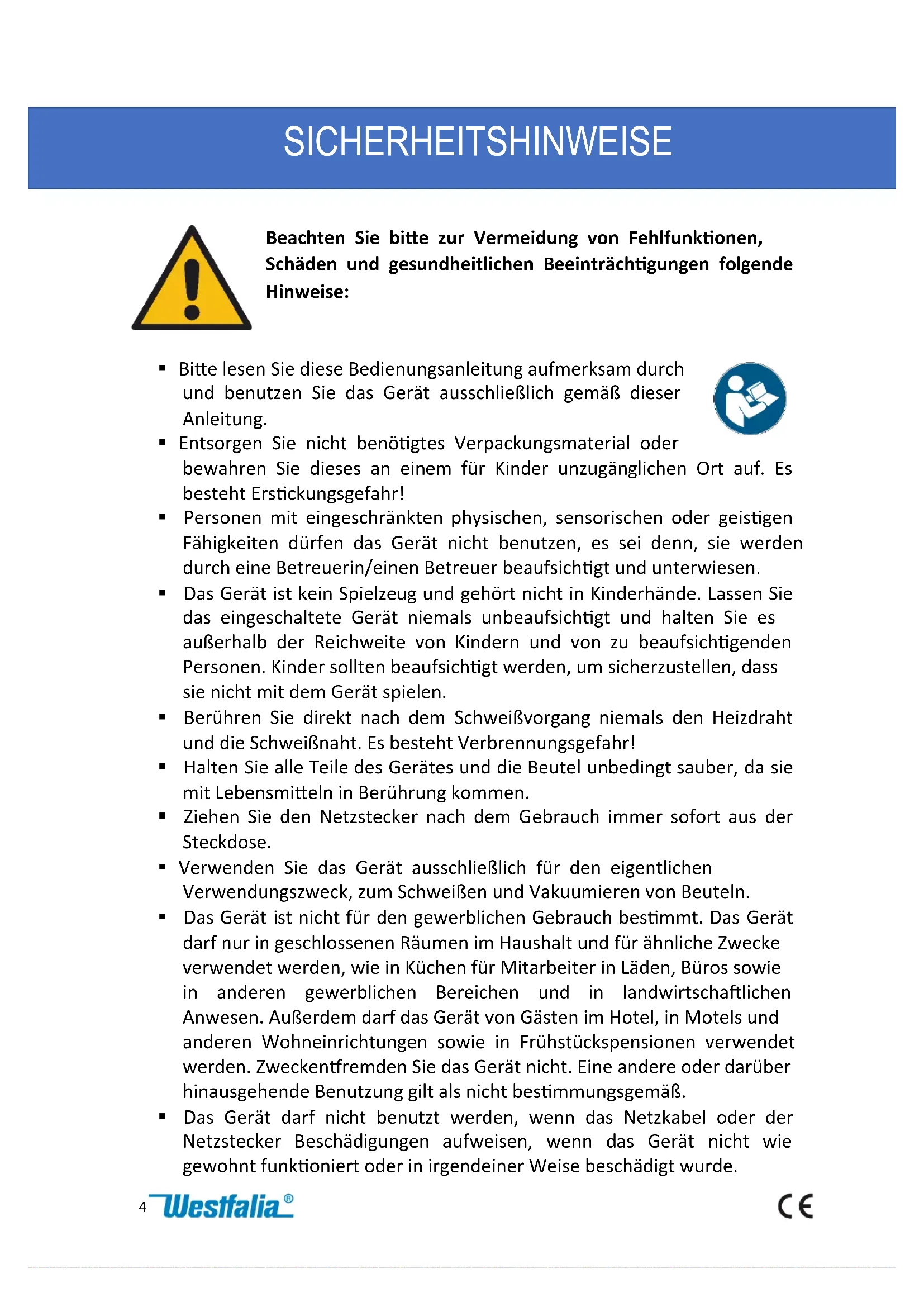 953228 - Vakuumverpackungsmaschinen Westfalia - Kostenlose Bedienungsanleitung