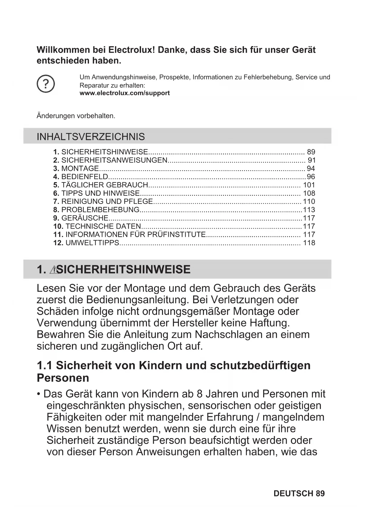 - Das Gerät kann von Kindern ab 8 Jahren und Personen mit eingeschränkten physischen, sensorischen oder geistigen Fähigkeiten oder mit mangelnder Erfahrung / mangelndem Wissen benutzt werden, wenn sie durch eine für ihre Sicherheit zuständige Person beaufsichtigt werden oder von dieser Person Anweisungen erhalten haben, wie das DEUTSCH 89Gerät sicher zu bedienen ist und welche Gefahren bei nicht ordnungsgemäßer Bedienung bestehen. Kinder im Alter von 3 bis 8 Jahren und Personen mit sehr umfangreichen und komplexen Behinderungen dürfen das Gerät unter der Voraussetzung, dass sie ordnungsgemäß angewiesen wurden, ein- und ausladen. Halten Sie Kinder unter 3 Jahren vom Gerät fern, wenn sie nicht ständig beaufsichtigt werden.