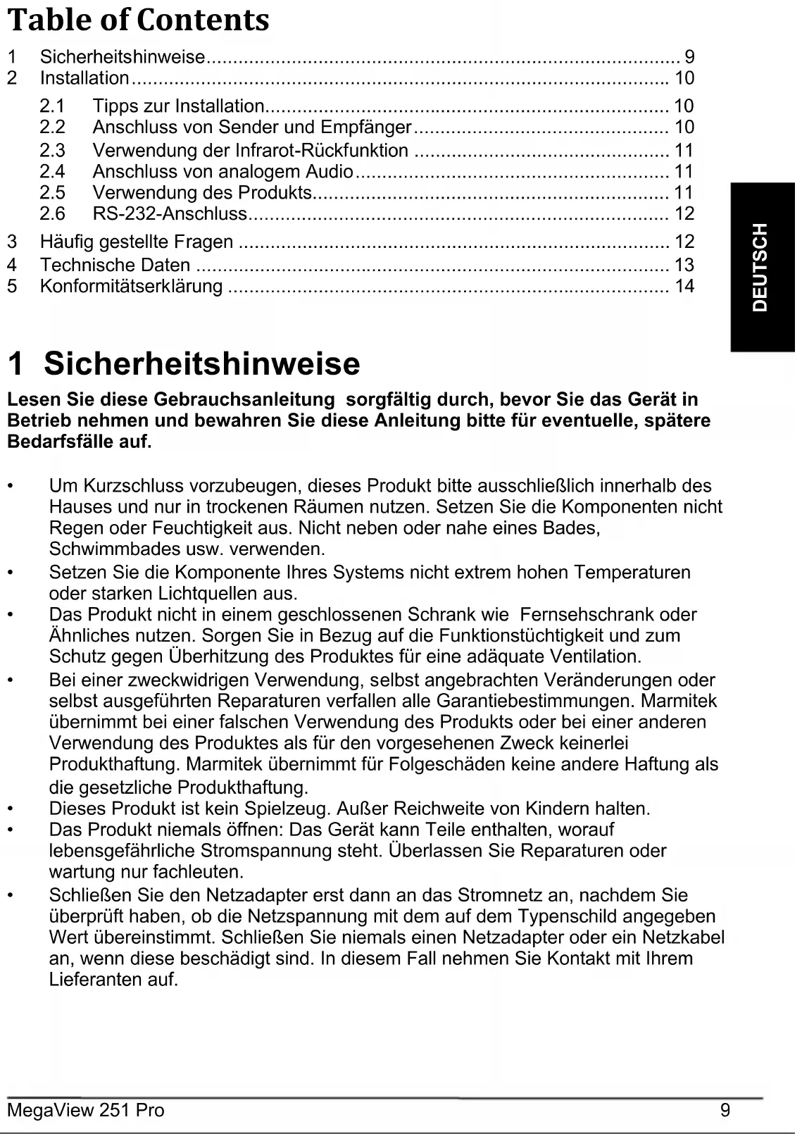 MegaView 251 Pro - Audio-/Video-Konverter MARMITEK - Kostenlose Bedienungsanleitung
