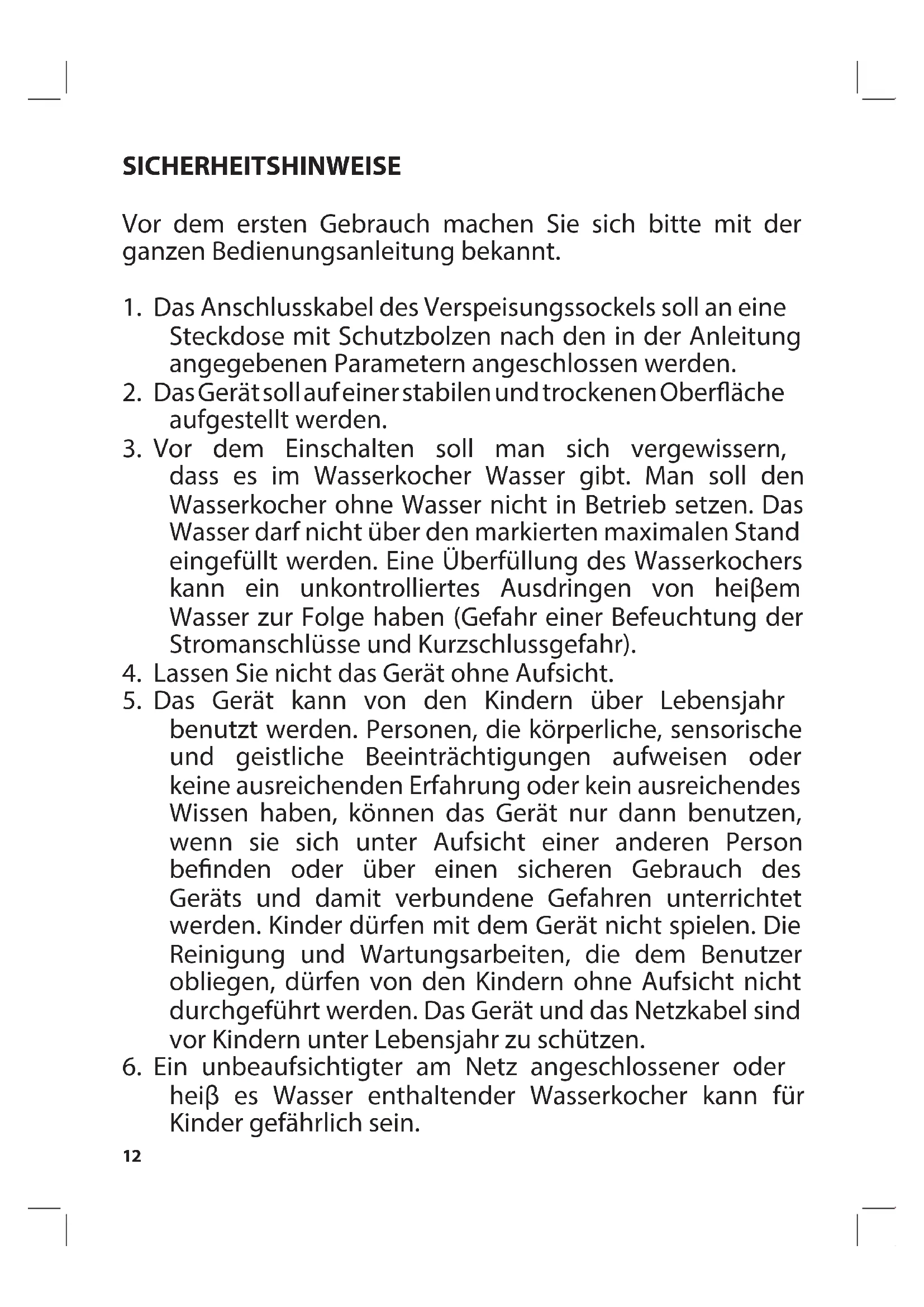 12. Der Wasserkocher darf nur mit dem beigelegten
