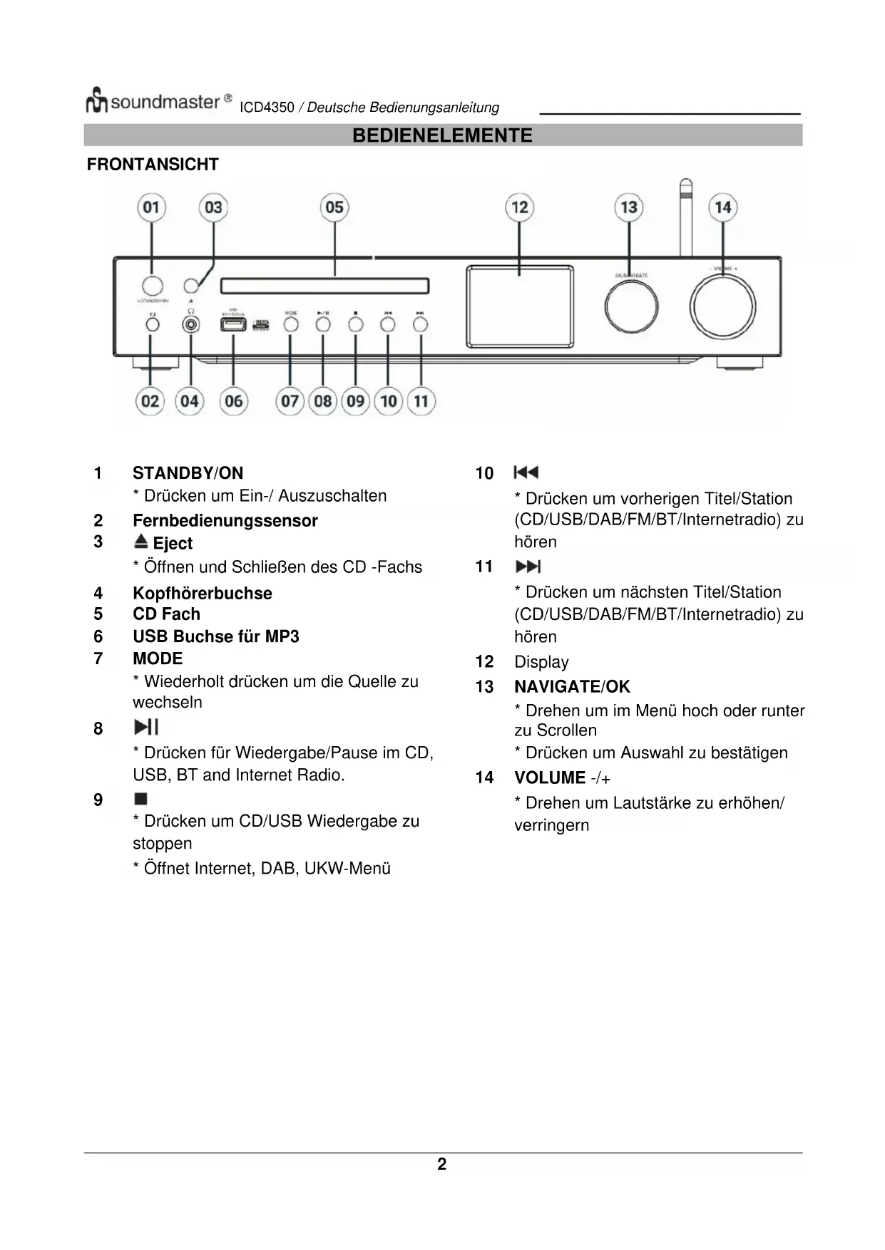 - Zeigt Informationen im CD/USB/ DAB/UKW/Internetradio-ModusICD4350 / Deutsche Bedienungsanleitung