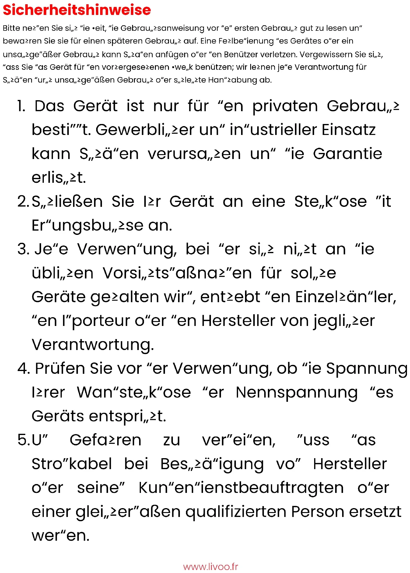 1. Das Gerät ist nur für den privaten Gebrauch