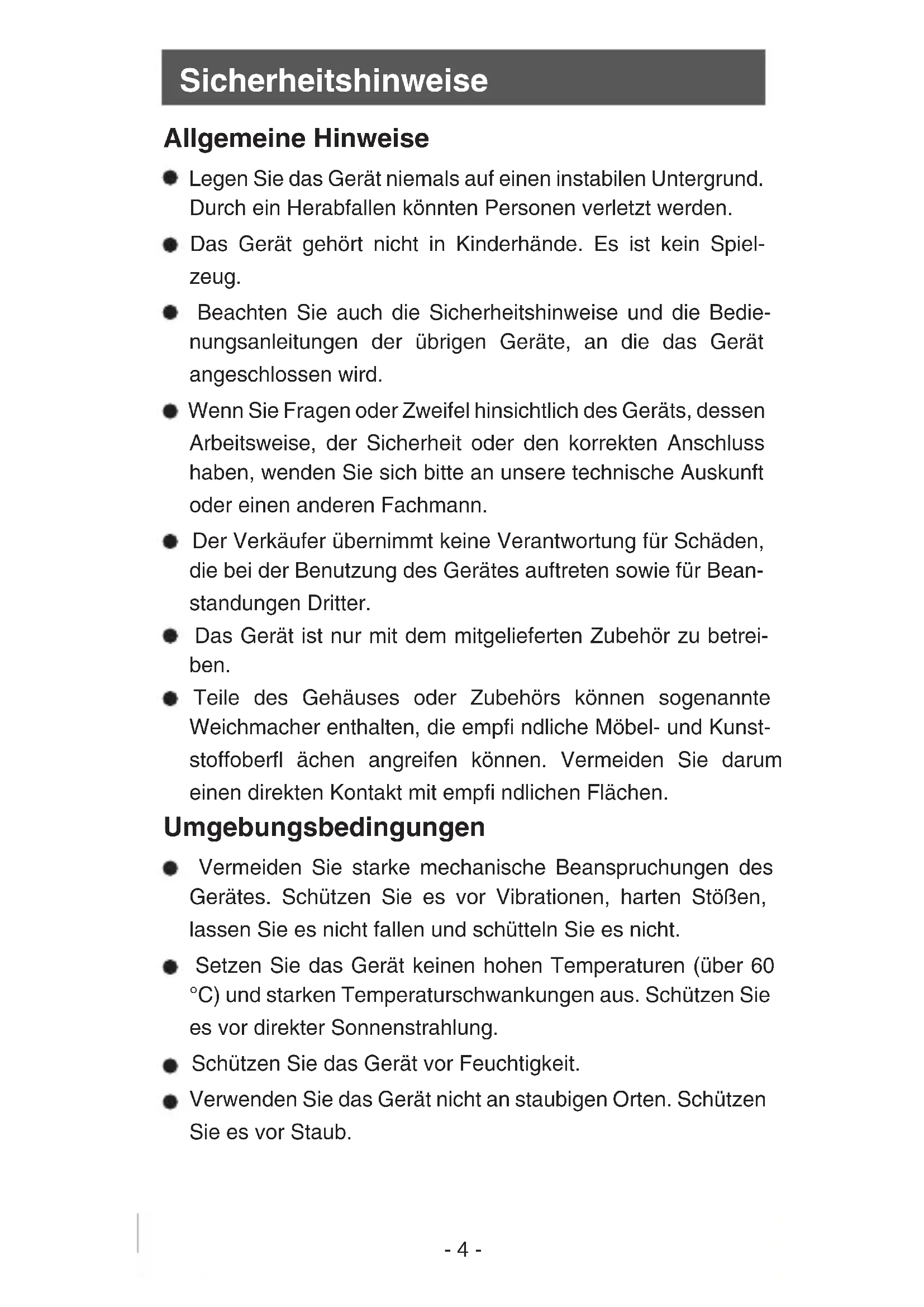- Sicherheitshinweise p. 4