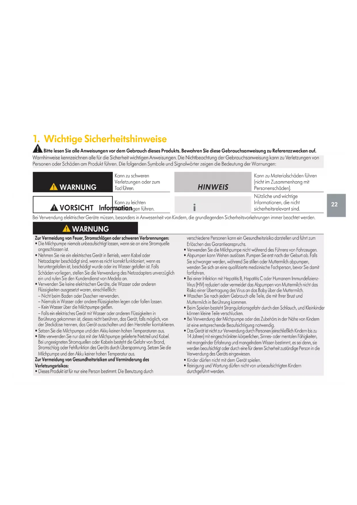 1. Wichtige Sicherheitshinweise 22