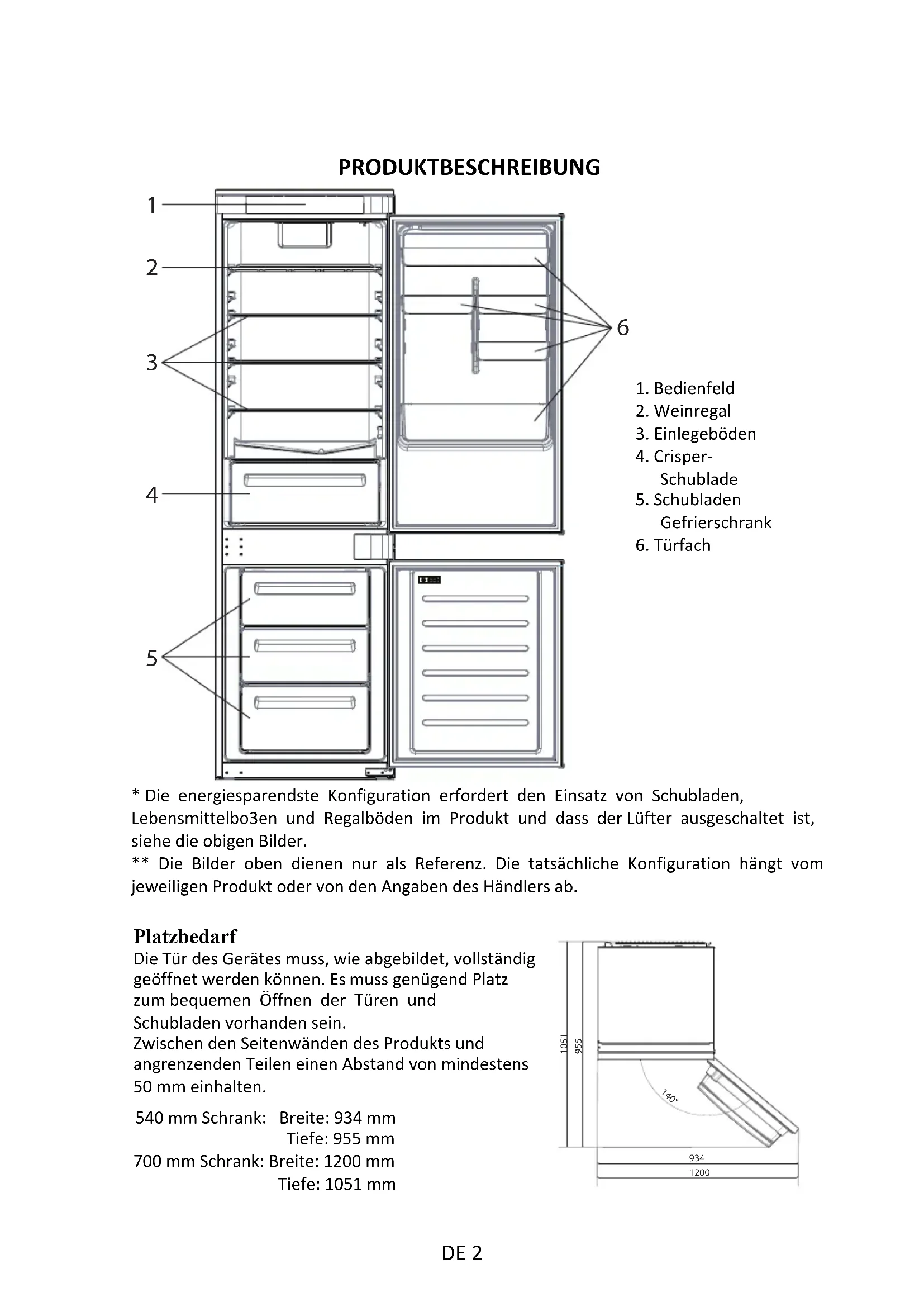 140° 540 mm Schrank: Breite: 934 mm Tiefe: 955 mm 700 mm Schrank: Breite: 1200 mm Tiefe: 1051 mm DE 2