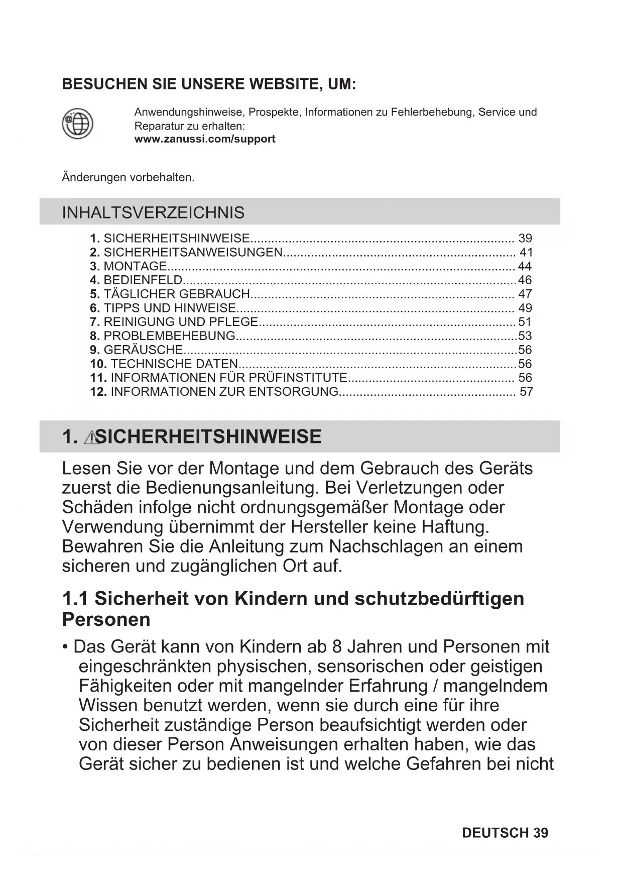 Finden Sie kostenlos die Bedienungsanleitung des Geräts ZEAN88ES ZANUSSI als PDF.