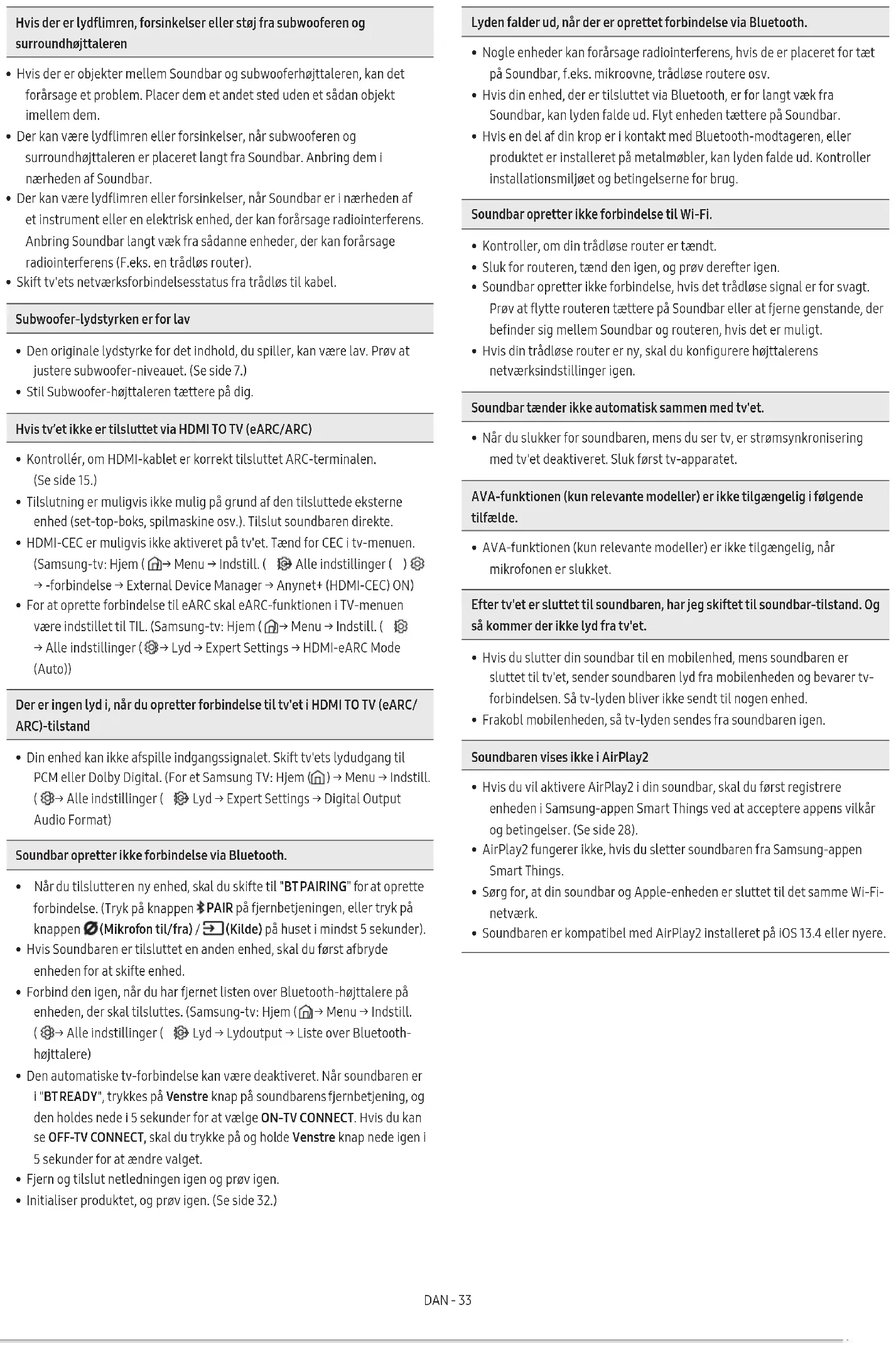 - Entfernen Sie den Netzstecker und schließen Sie ihn wieder an.DEU - 33 Im Falle von Tonaussetzern, Verzögerungen oder Geräuschen vom Subwoofer und dem Surround-Lautsprecher