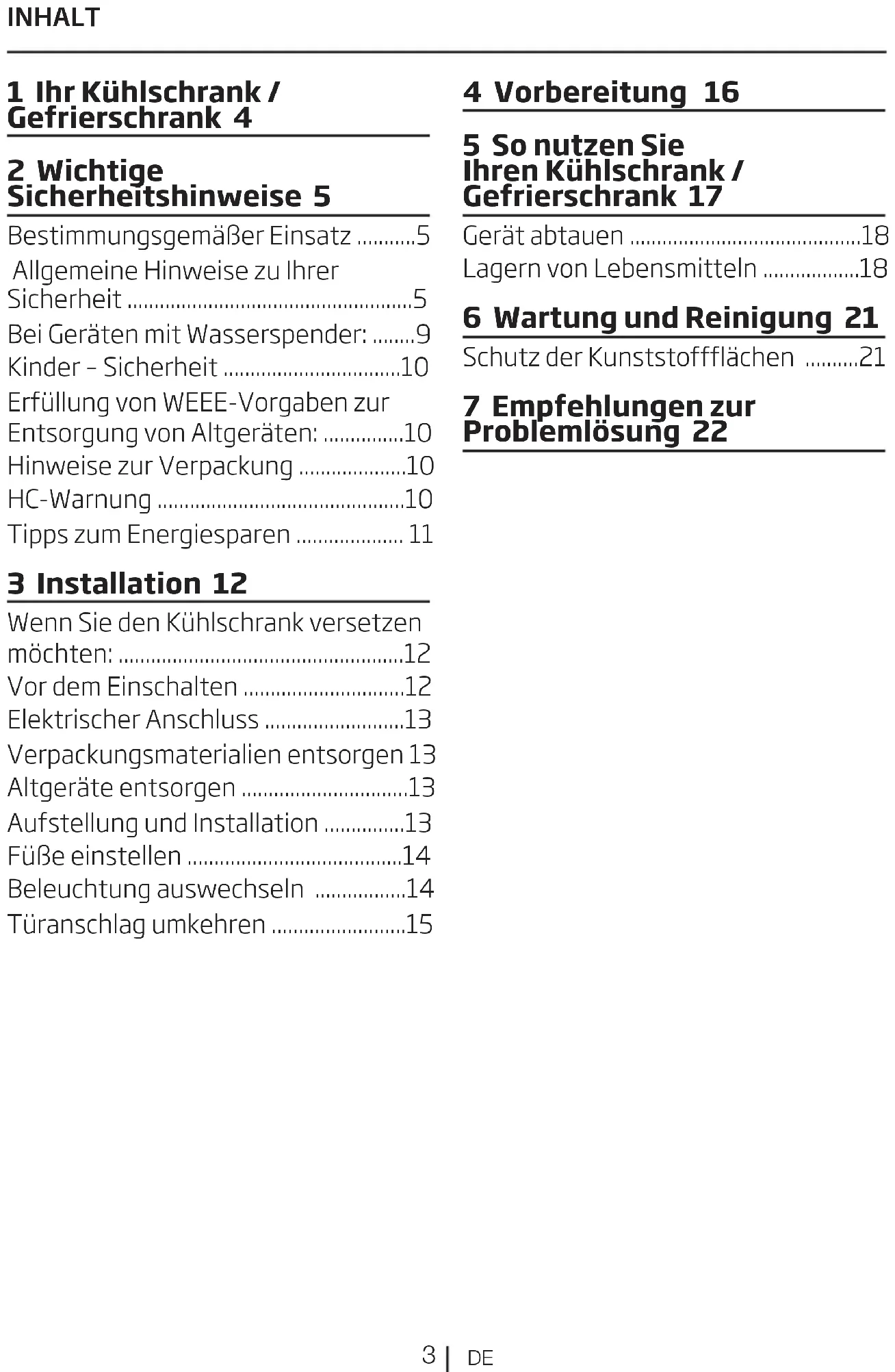 1 Ihr Kühlschrank / Gefrierschrank 4 2 Wichtige Sicherheitshinweise 5