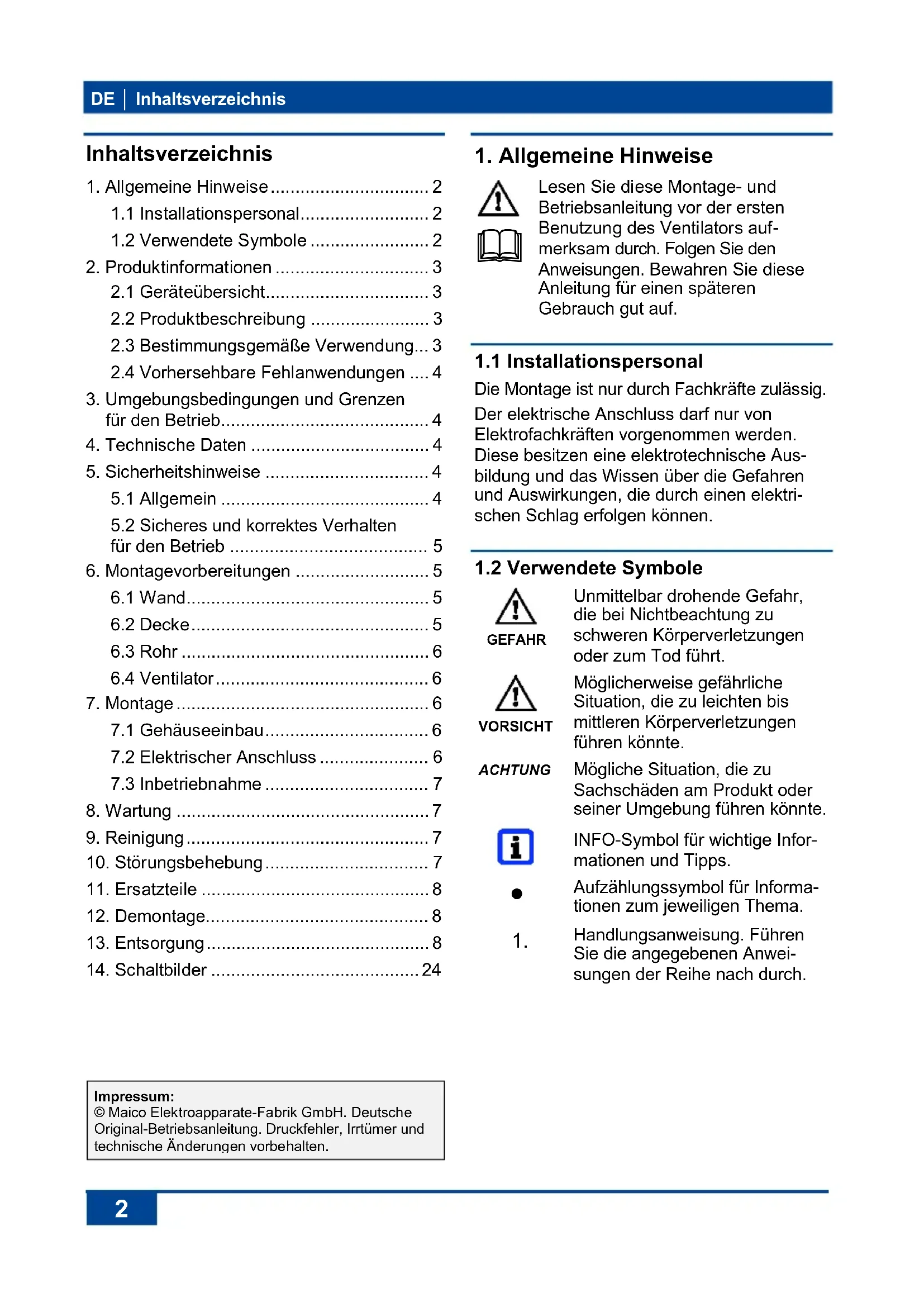 Handlungsanweisung. Führen Sie die angegebenen Anwei-sungen der Reihe nach durch. Impressum: © Maico Elektroapparate-Fabrik GmbH. Deutsche Original-Betriebsanleitung. Druckfehler, Irrtümer und technische Änderungen vorbehalten.2. Produktinformationen │ DE