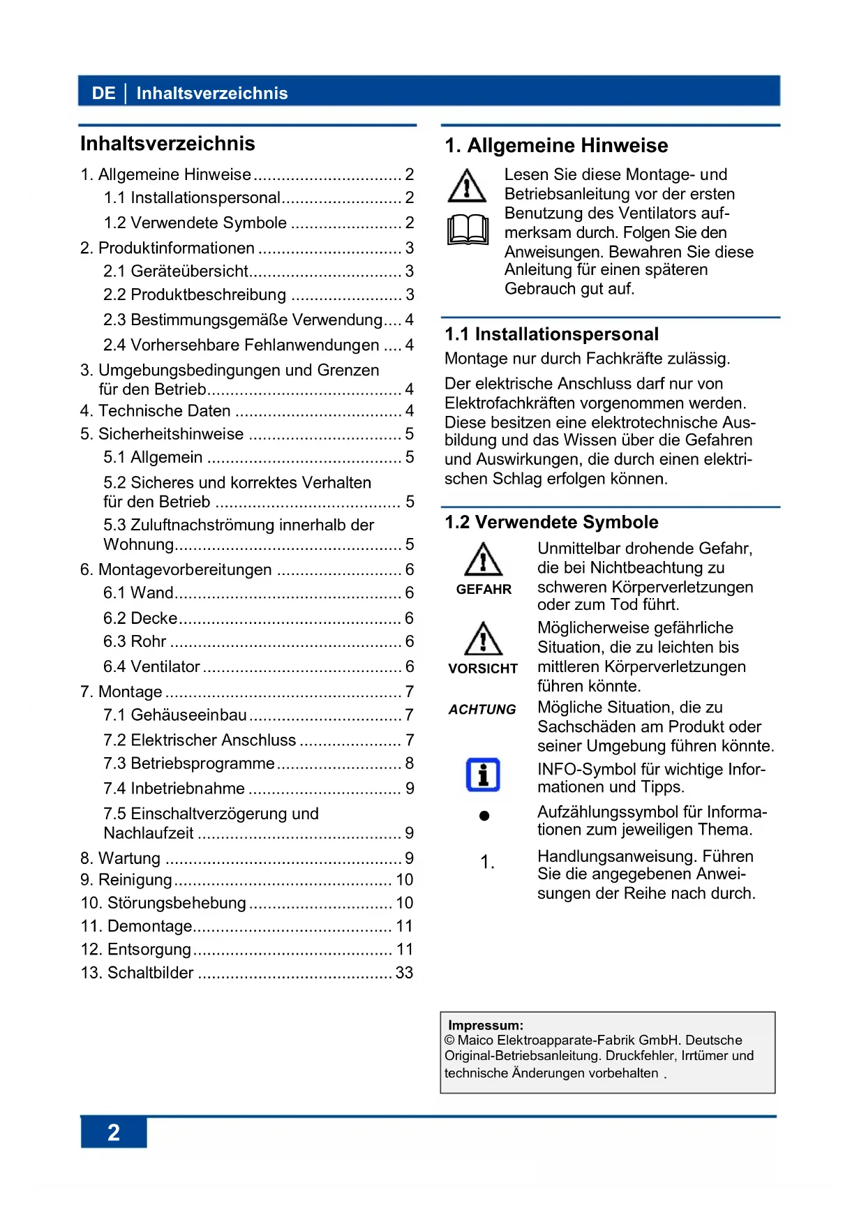 Handlungsanweisung. Führen Sie die angegebenen Anwei-sungen der Reihe nach durch. Impressum: © Maico Elektroapparate-Fabrik GmbH. Deutsche Original-Betriebsanleitung. Druckfehler, Irrtümer und technische Änderungen vorbehalten.2. Produktinformationen │ DE