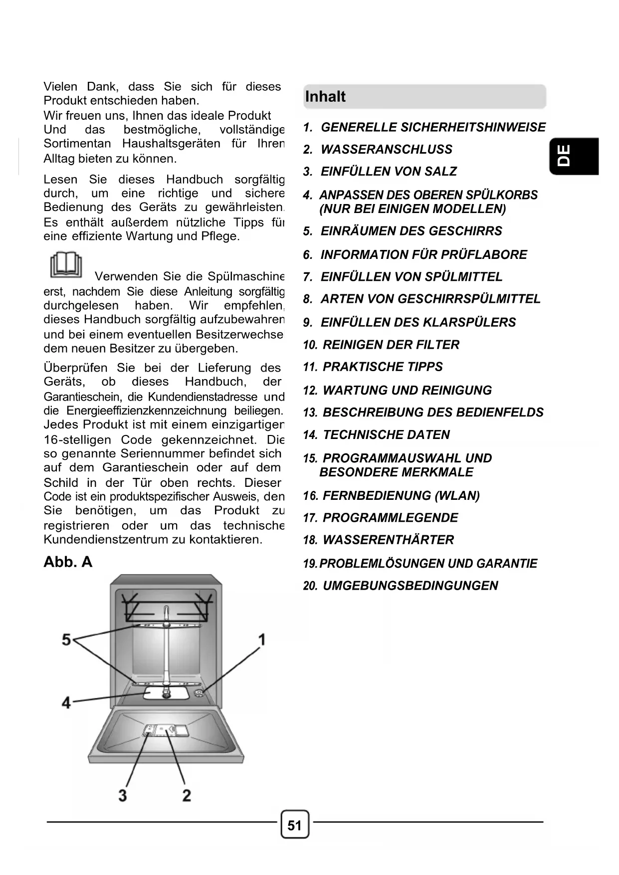 Verwenden Sie die Spülmaschine erst, nachdem Sie diese Anleitung sorgfältig durchgelesen haben. Wir empfehlen, dieses Handbuch sorgfältig aufzubewahren und bei einem eventuellen Besitzerwechsel dem neuen Besitzer zu üb ergeben.