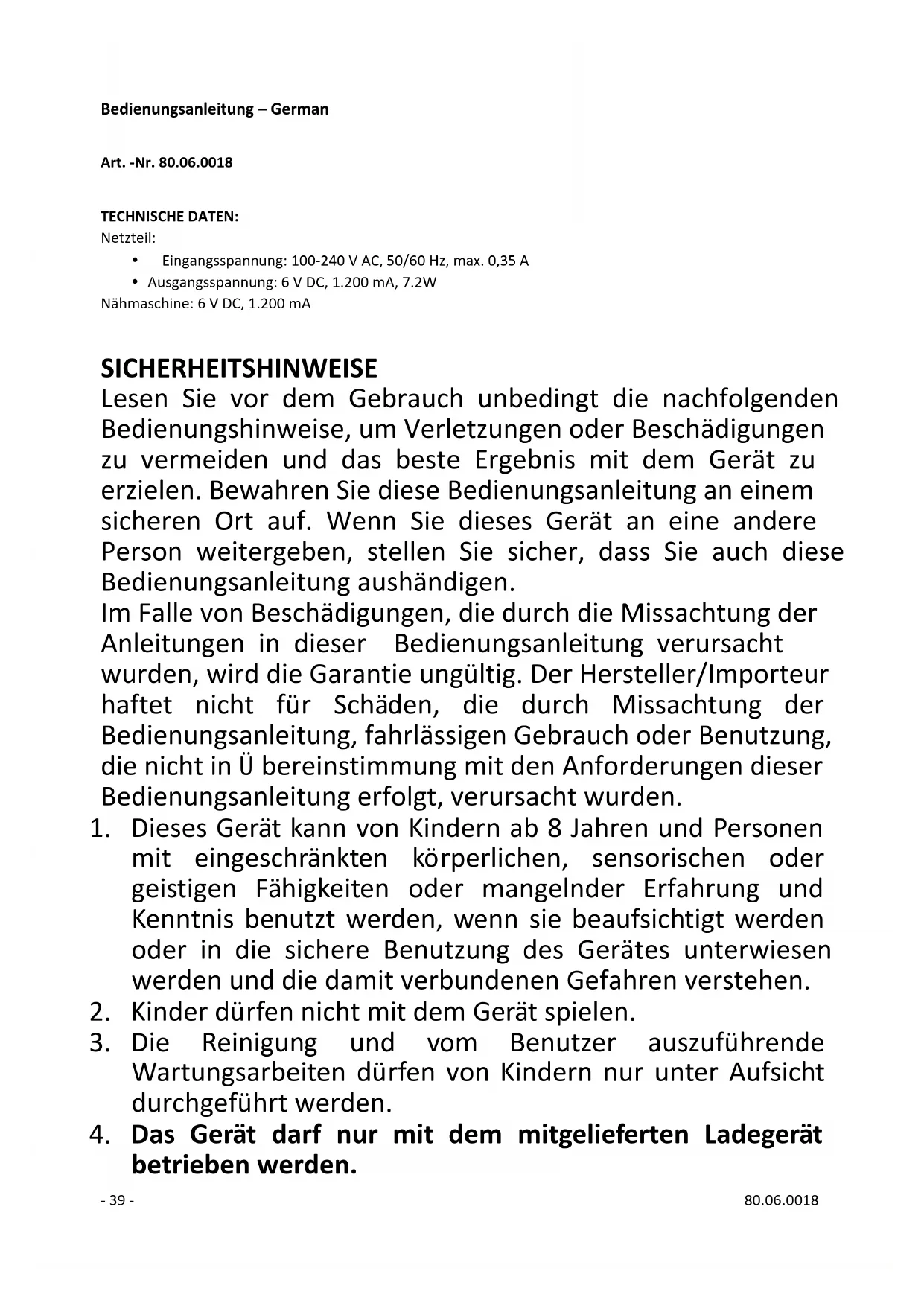 14. Verwenden Sie das Gerät nur zu seinem- 41 - 80.06.0018