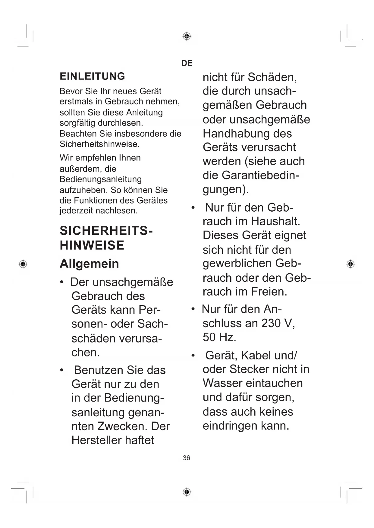 EINLEITUNG Bevor Sie Ihr neues Gerät erstmalsinGebrauchnehmen, sollten Sie diese Anleitung sorgfältig durchlesen. BeachtenSieinsbesonderedie Sicherheitshinweise. WirempfehlenIhnen außerdem,die Bedienungsanleitung aufzuheben.SokönnenSie die Funktionen des Gerätes jederzeitnachlesen. SICHERHEITS- HINWEISE Allgemein
