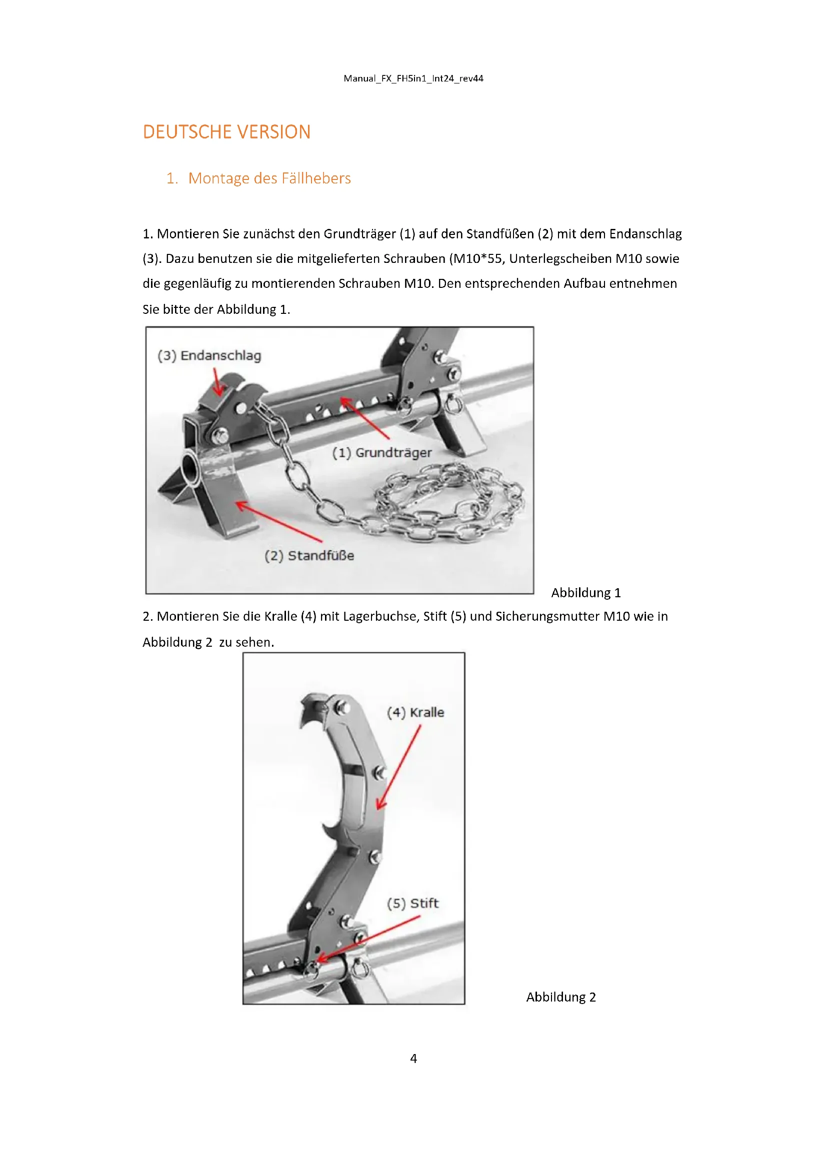 dem Grundträger weiderum mit einem Aoslösestift (9.5x38mm). Die Positionierung der Kralle muss der jeweiigen Situation / Stammdruchmesser angepasst werden.Manual_FX_FH5in1_Int24_rev44