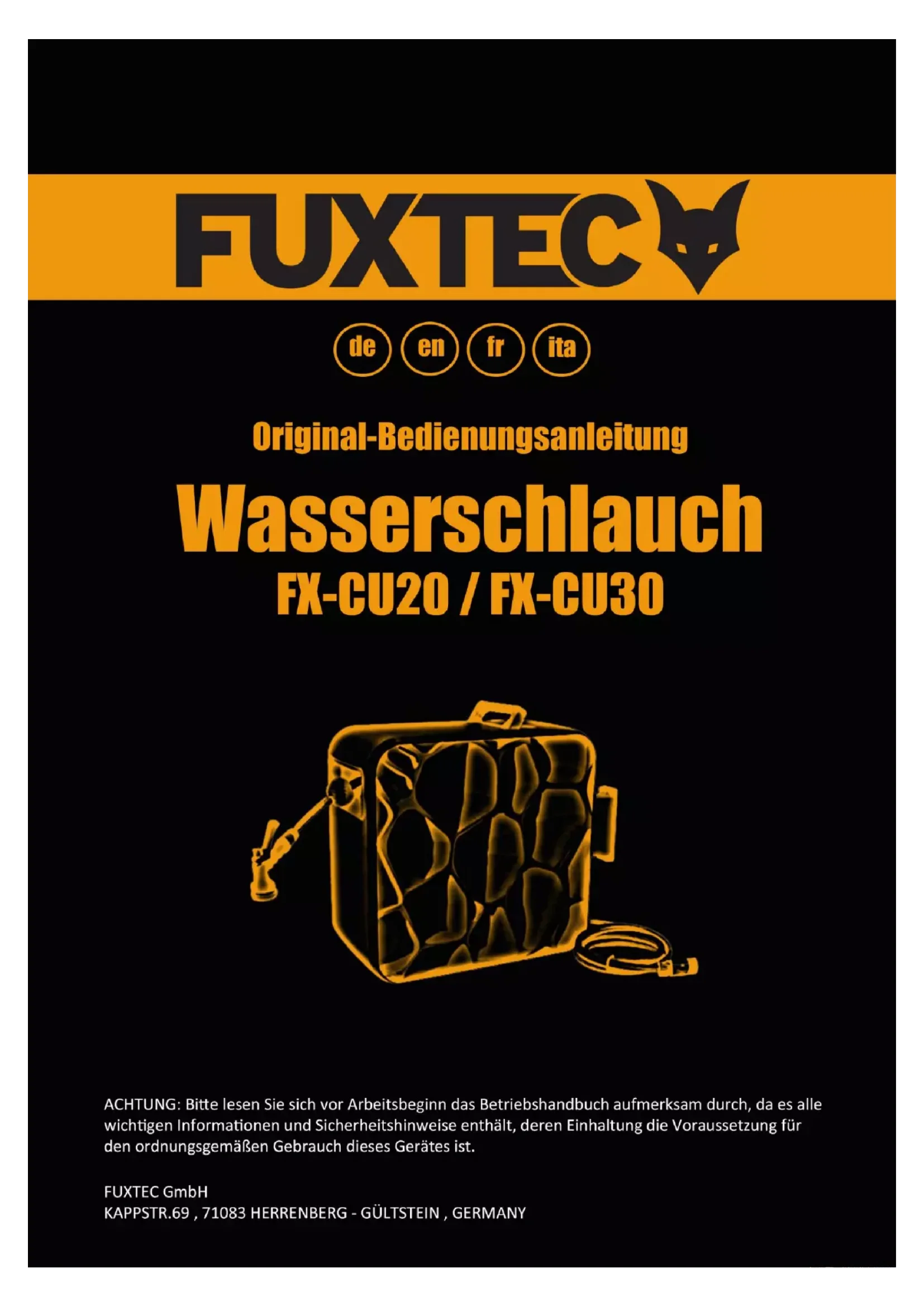 - Nicht für den Gebrauch von Kindern geeignetOriginal-Bedienungsanleitung FUXTEC Wasserschlauch FX-CU20 / FX-CU30