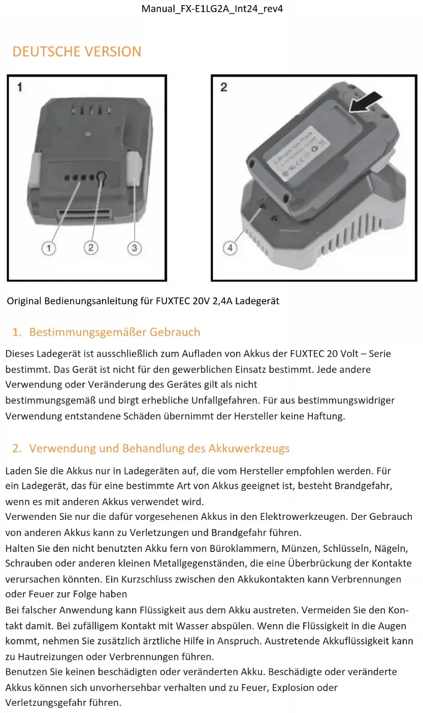 FX-E1LG2A - Batterieladegerät Fuxtec - Kostenlose Bedienungsanleitung