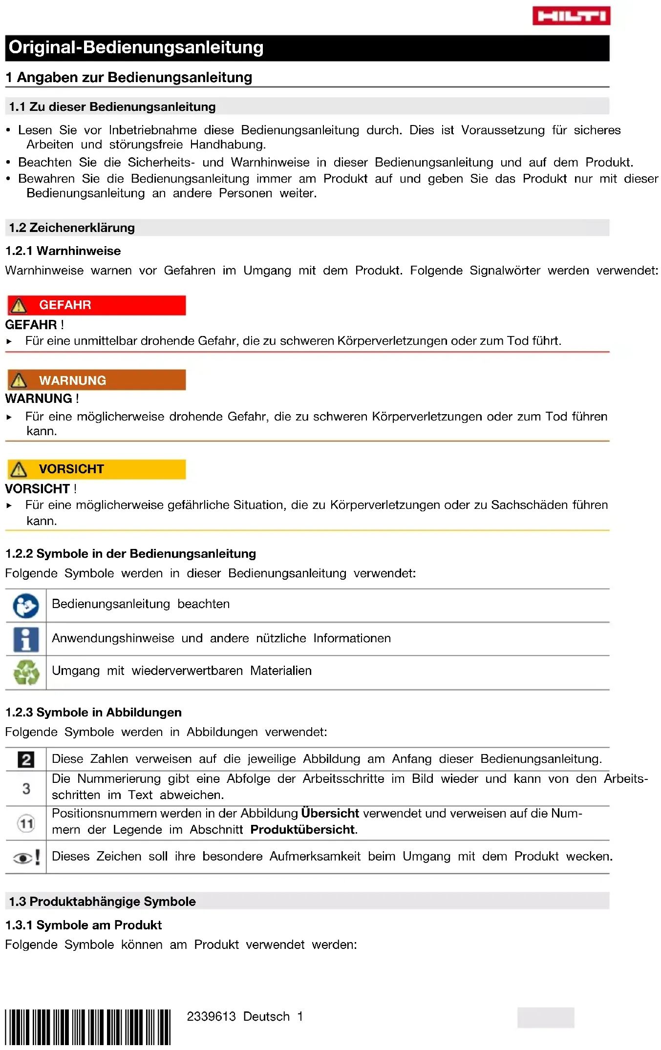 1.2.2 Symbole in der Bedienungsanleitung