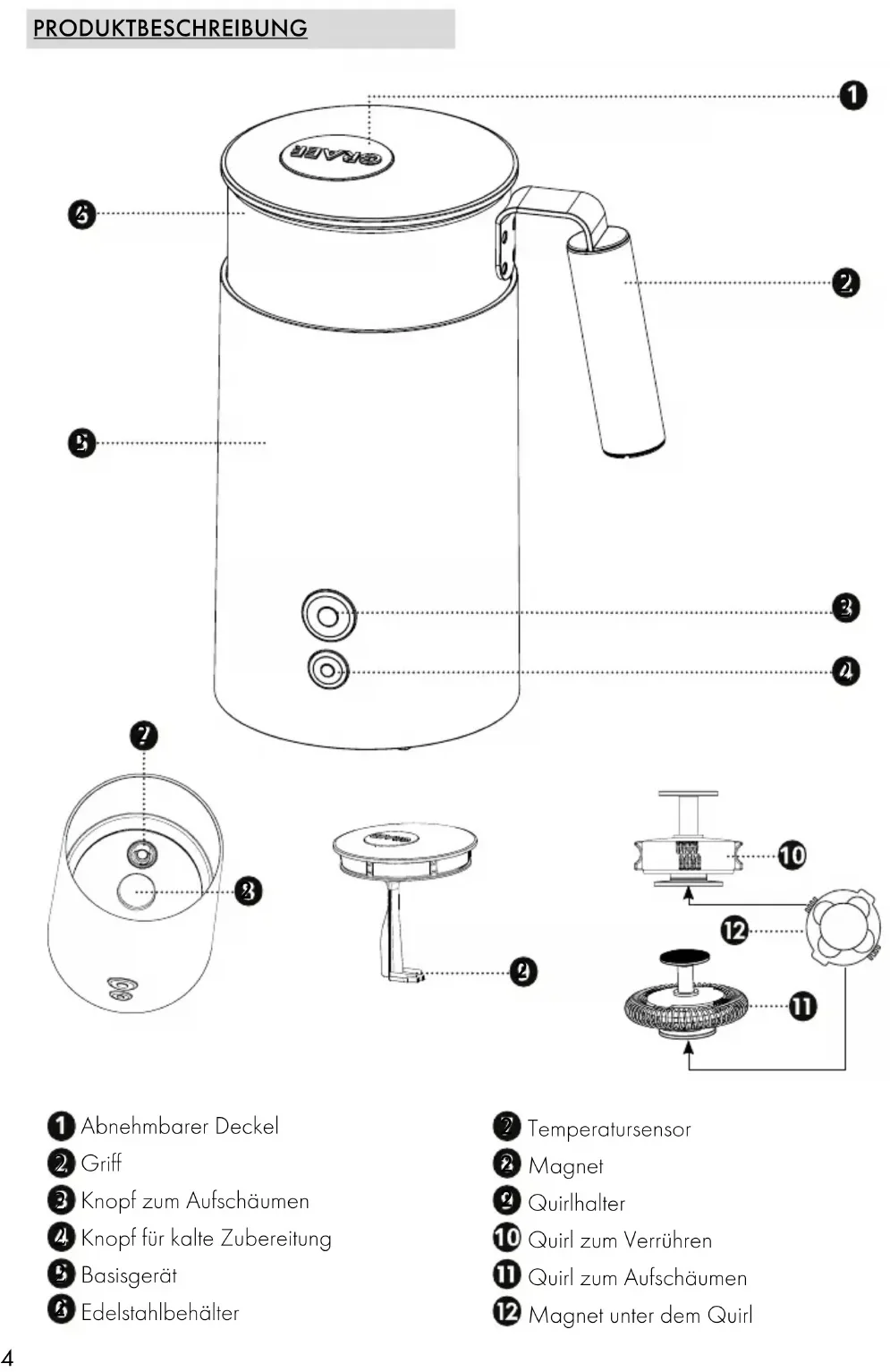 VORWORT Sehr geehrte Kundin, sehr geehrter Kunde, mit dem Kauf dieses Milchaufschäumers haben Sie eine gute Wahl getroffen. Sie haben ein anerkanntes Qualitätsprodukt erworben. Wir danken Ihnen für Ihren Kauf und wünschen Ihnen viel Freude mit Ihrem neuen Graef Milchaufschäumer.