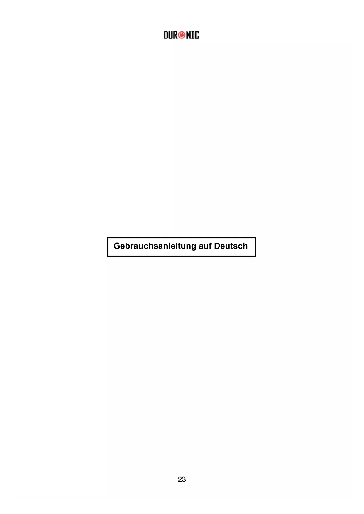 - Versuchen Sie niemals Teile zu ersetzen oder das Gerät eigenständig zu reparieren. Modifizieren Sie Gerät nicht anders, als es in der Bedienungs- anleitung steht. Das Gerät hat Teile die unter Netzspannung stehen. Reparaturen werden nur von Duronic mit originalen Ersatzteilen durchgeführt.