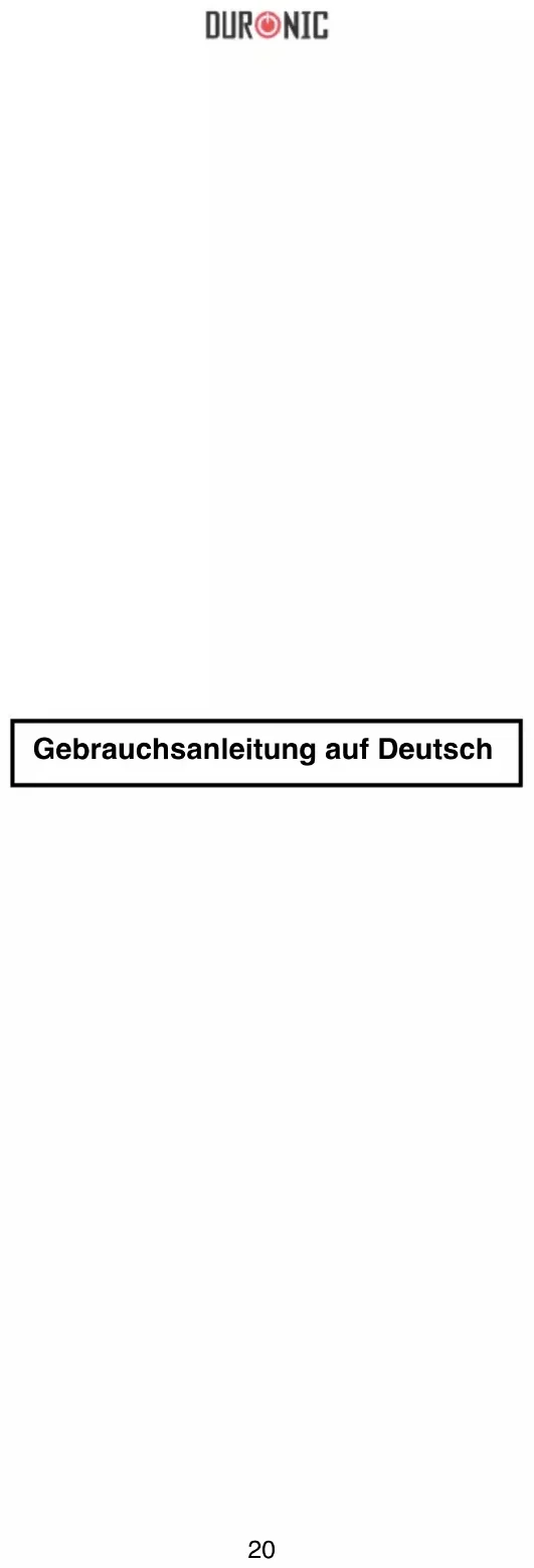 Shine-Mart Ltd, der Markeninhaber von Duronic Produkten, bietet 1 Jahr Gewährleistung. HINWEIS: DIESE BEDINGUNGEN BEEINFLUSSEN IHRE GESETZLICHE RECHTE ALS VERBRAUCHER NICHT Dieses Produkt wurde unter strengen Qualitätskontrollen produziert und aus hochwertigen Materialien hergestellt, um ausgezeichnete Leistung und Zuverlässigkeit zu gewährleisten. Sofern das Produkt korrekt benutzt und gewartet wird, kann eine langlebige Lebensdauer erwartet werden. Das Produkt hat eine Gewährleistung von einem Jahr ab Kaufdatum. Beim Auftreten eines Schadens, der von fehlerhalten Materialien oder Verarbeitung verursacht wurde, sollte das defekte Produkt an den ursprünglichen Verkäufer zurückgegeben werden. Die Erstattung oder Umtausch erfolgt nach Vorschriften des Unternehmens. Duronic Produkte haben 1 Jahr Gewährleistung unter folgenden Bedingungen: