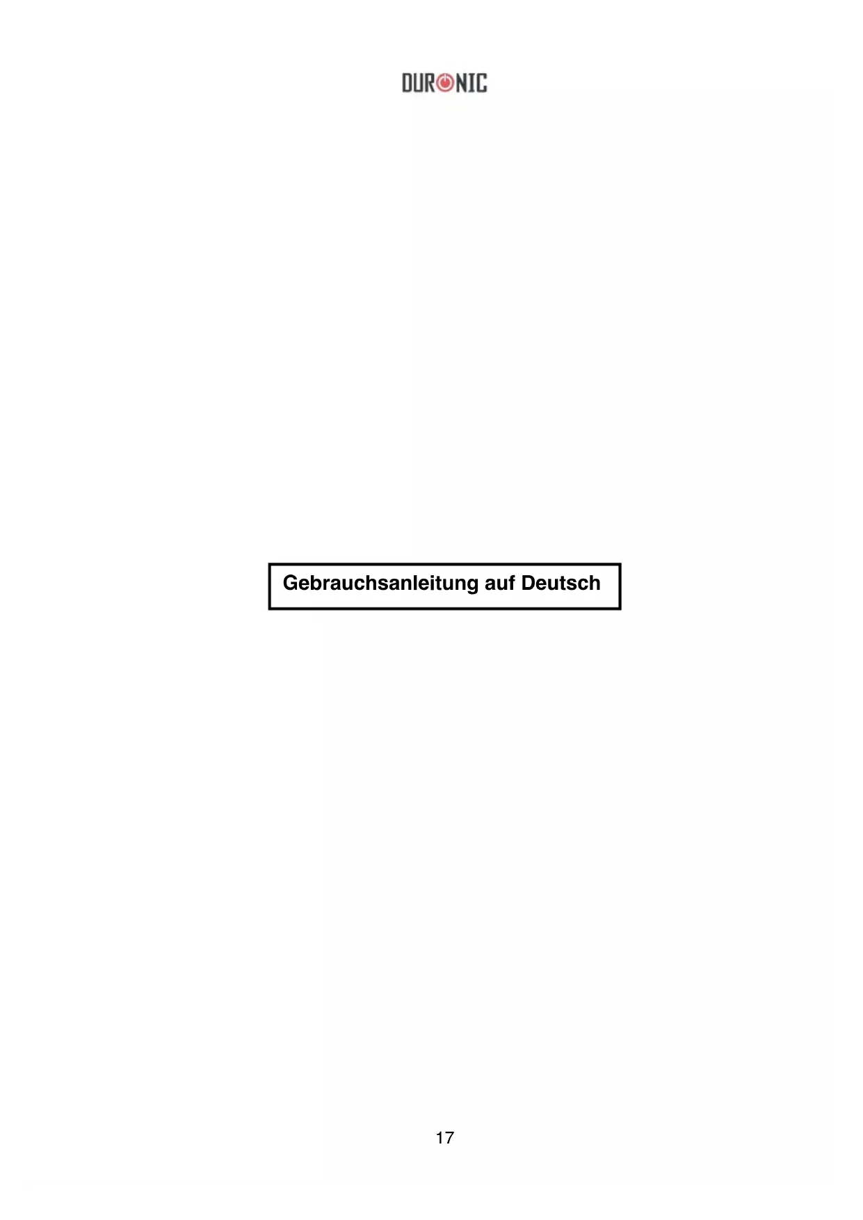 Benutzen Sie keine Scheuermittel oder Chemikalien zur Reinigung.21 1 Jahr Gewährleistung von Shine-Mart Ltd, der Markeninhaber von Duronic Produkte. ZUR BEACHTUNG : DIESE BEDINGUNGEN HABEN KEINE BEEINFLUSSUNG AUF IHRE