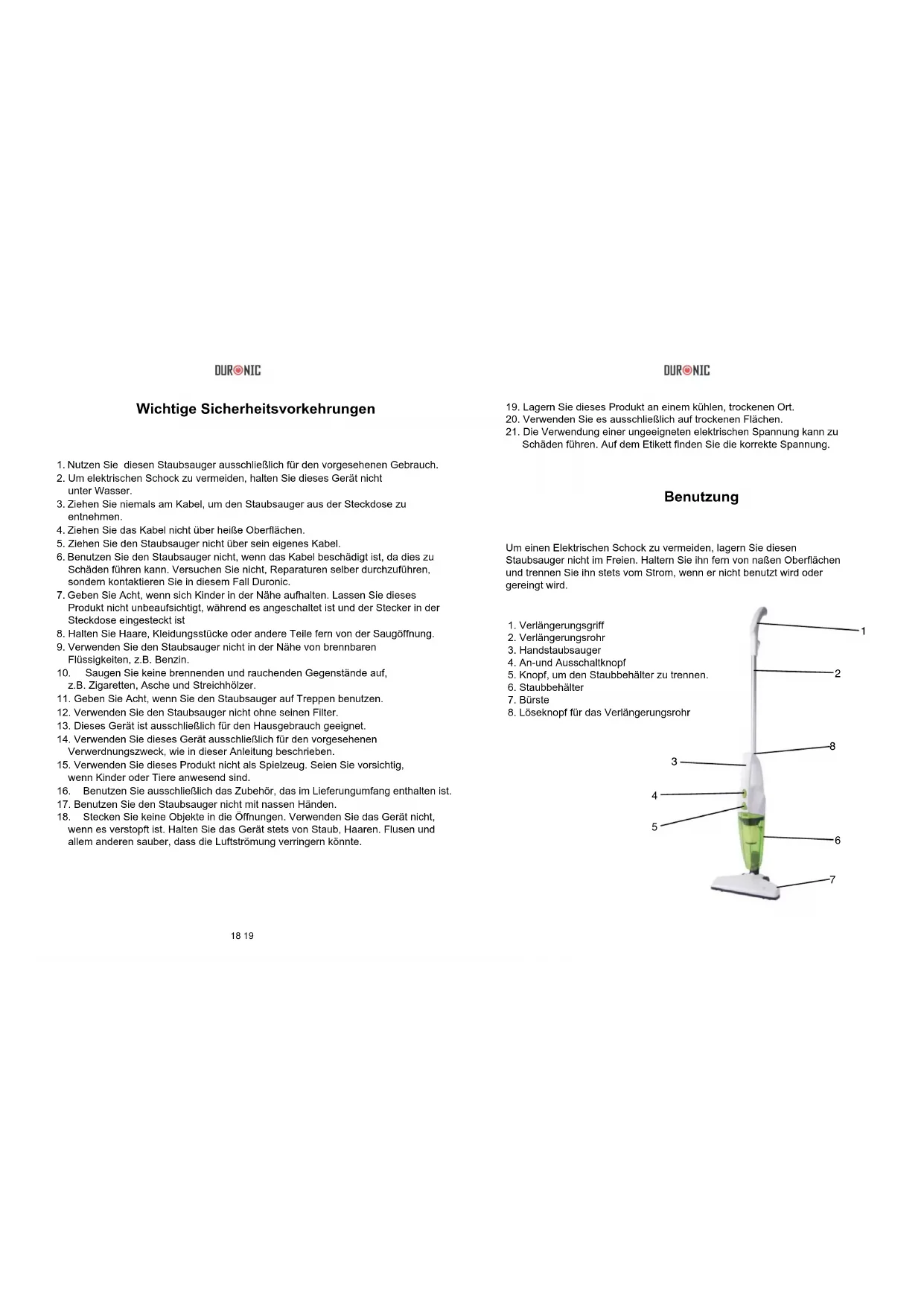 VC8 - Staubsauger Duronic - Kostenlose Bedienungsanleitung